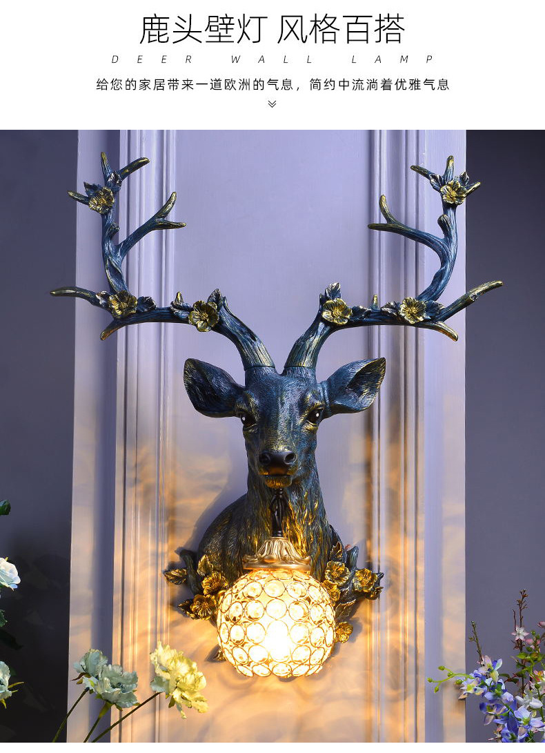 미국 럭키 사슴 머리 벽 램프 빈티지 거실 TV 벽 창조적 인 입구 레스토랑 장식 램프 뿔 램프 벽 램프