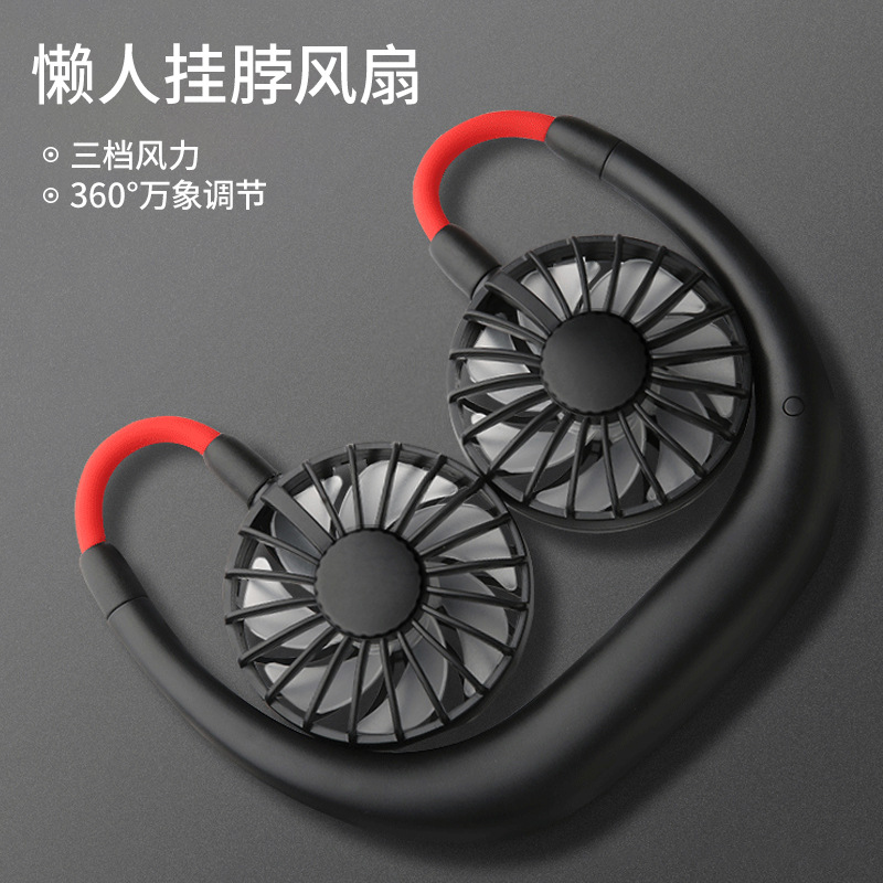 작은 팬 목에 매달려 USB 충전식 학생 게으른 큰 바람 빛 발광 매달려 목 작은 선풍기