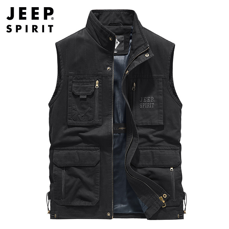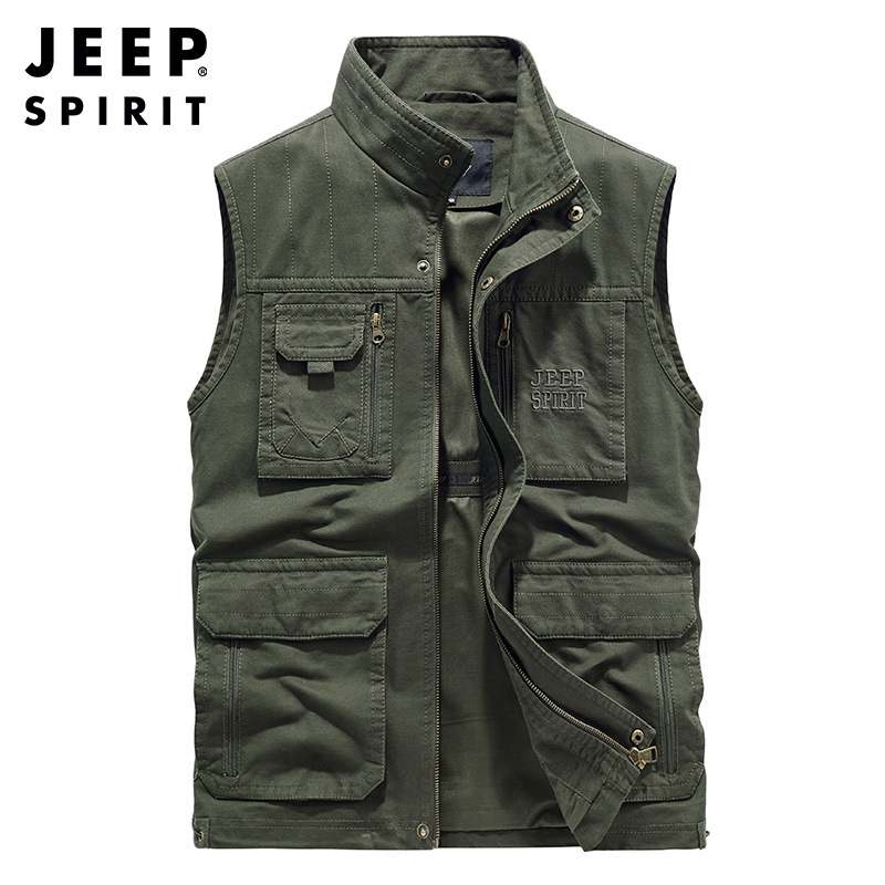 JEEP SPIRIT 가을 2021 새로운 남성 스탠드 칼라 워싱 조끼 캐주얼 느슨한 남성 말 클립 0911스토어 가기