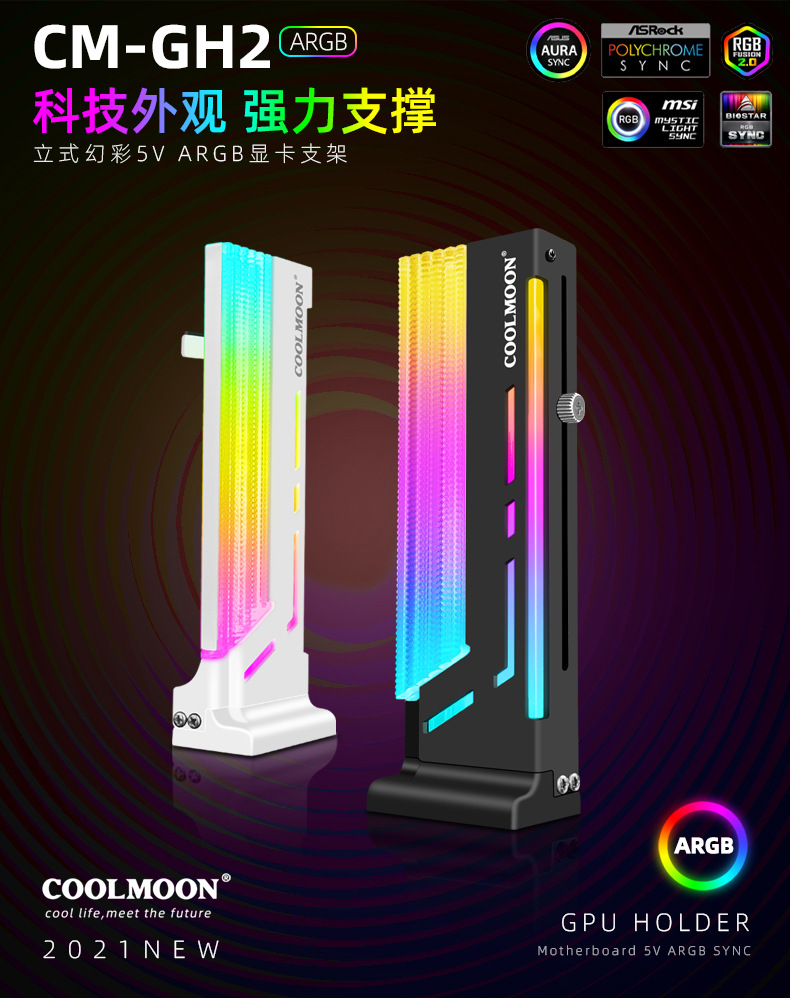 Kuyue CM-GH2 수직 그래픽 카드 브래킷 5v 신성한 빛 동기화 ARGB 잭 매직 컬러 그래픽 카드 지원 브래킷