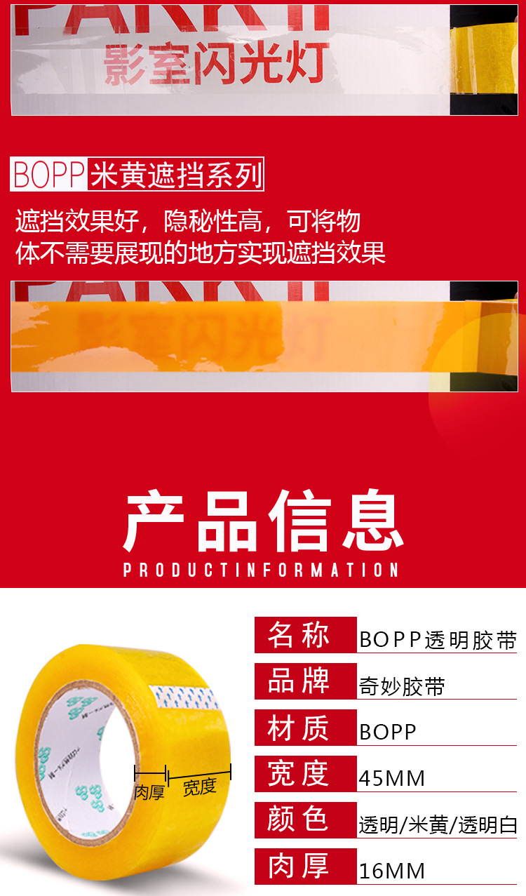• 투명한 노란색 45*100 m; 밀봉 테이프