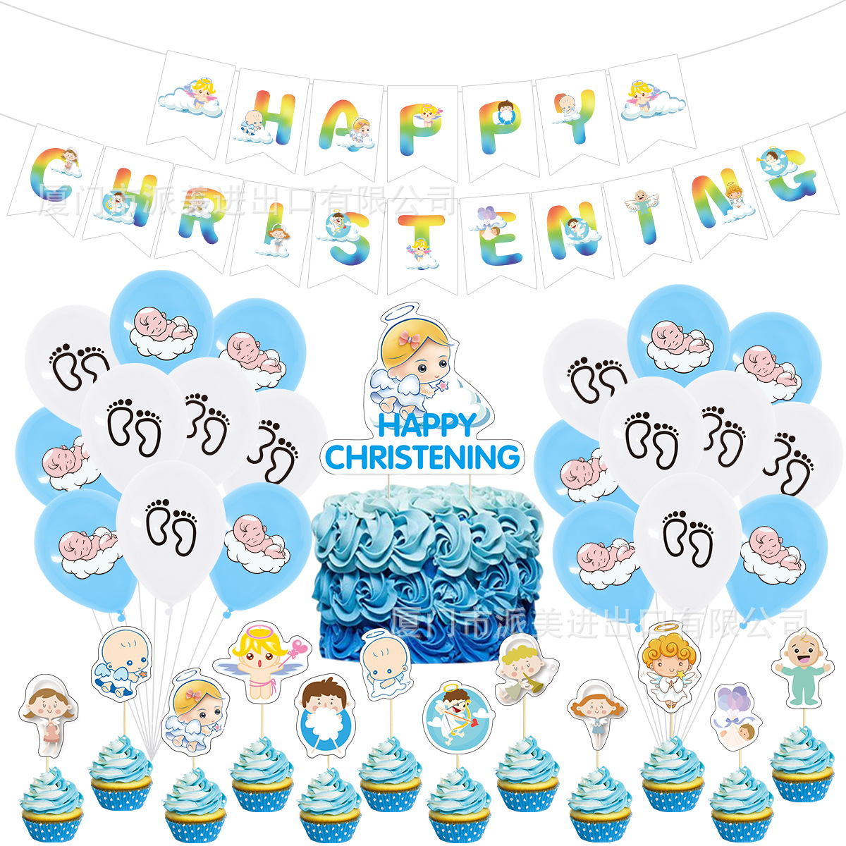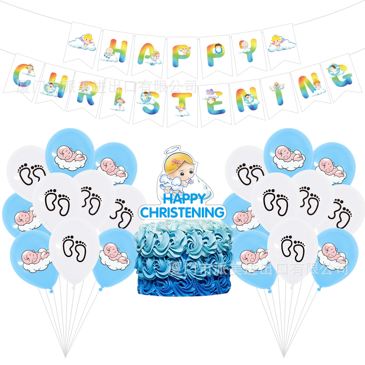 아기 세례 테마 소년 생일 파티 장식 용품 알파벳 깃발 케이크 깃발 라텍스 풍선스토어 가기