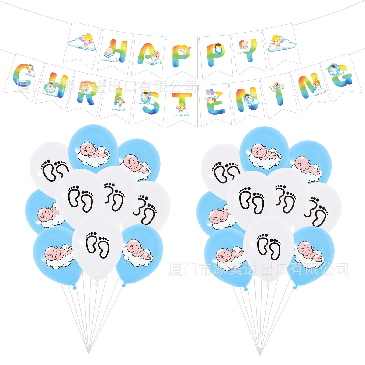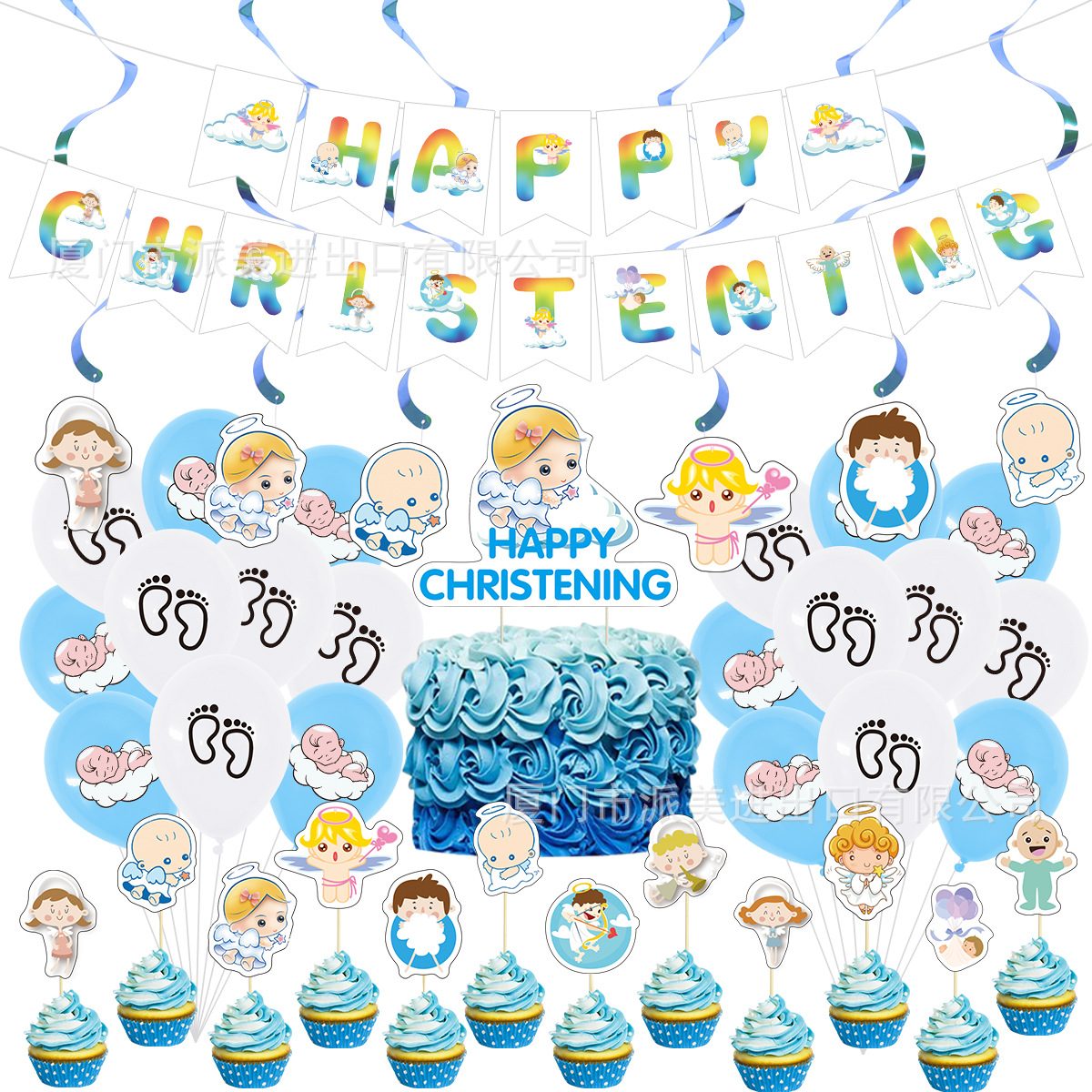 아기 세례 테마 소년 생일 파티 장식 용품 알파벳 깃발 케이크 깃발 라텍스 풍선