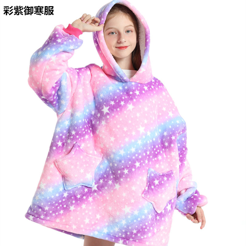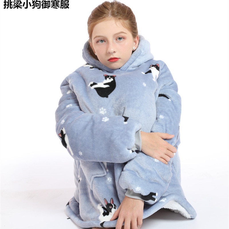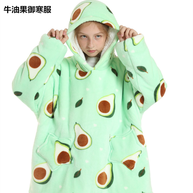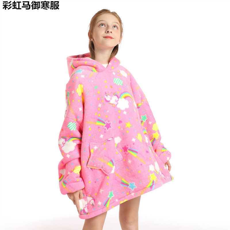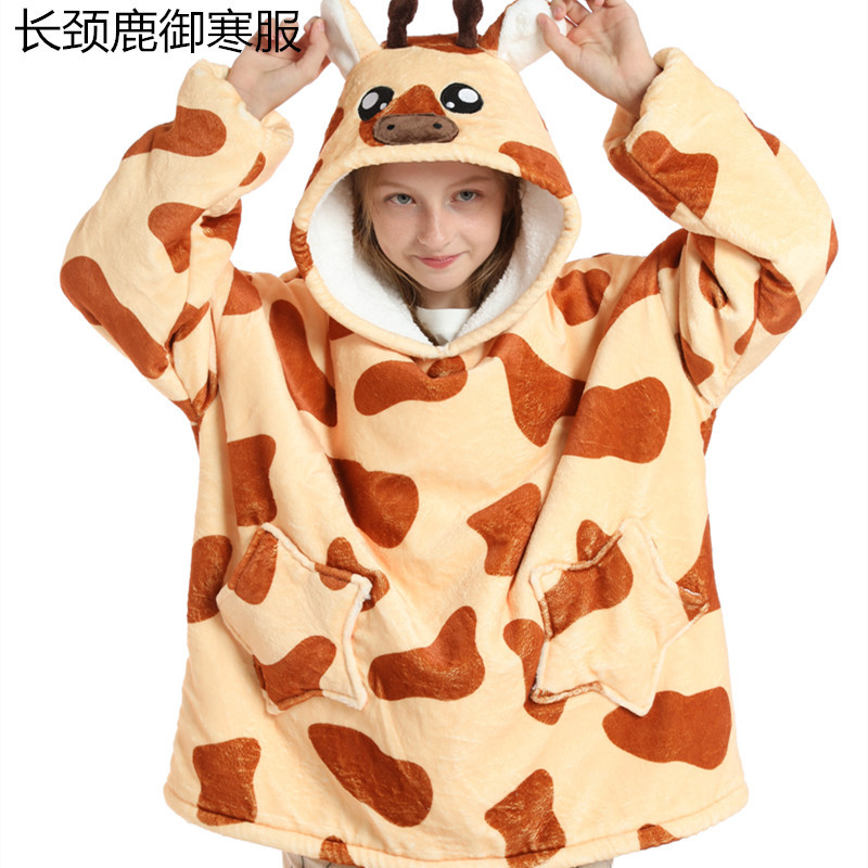 크로스보더 프린트 레이지웨어 풀오버 플리스 후드 잠옷 TV 담요 야외용 면옷 방한복 만화 캐릭터 보온복
