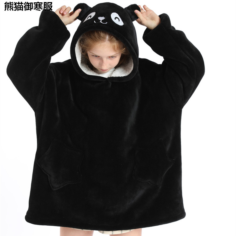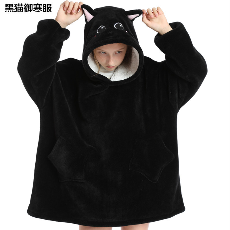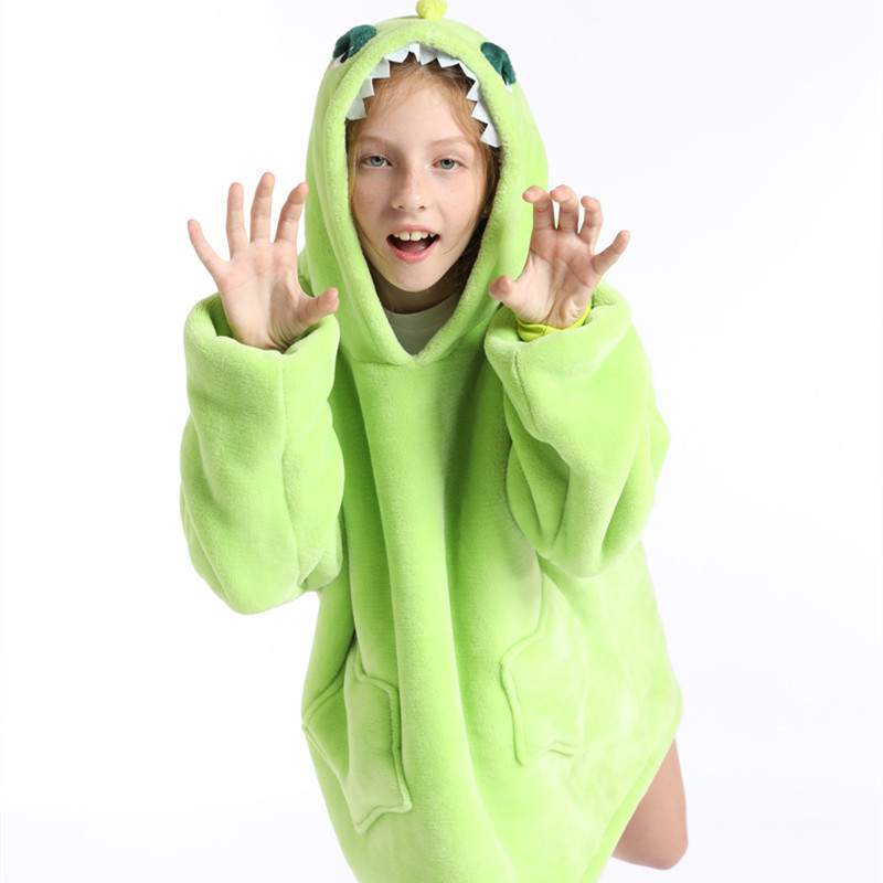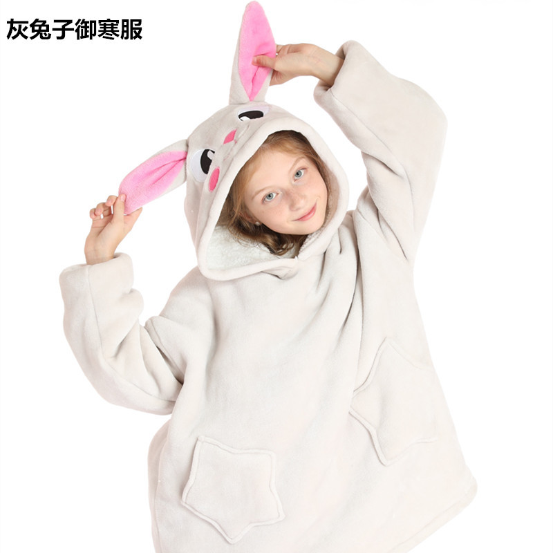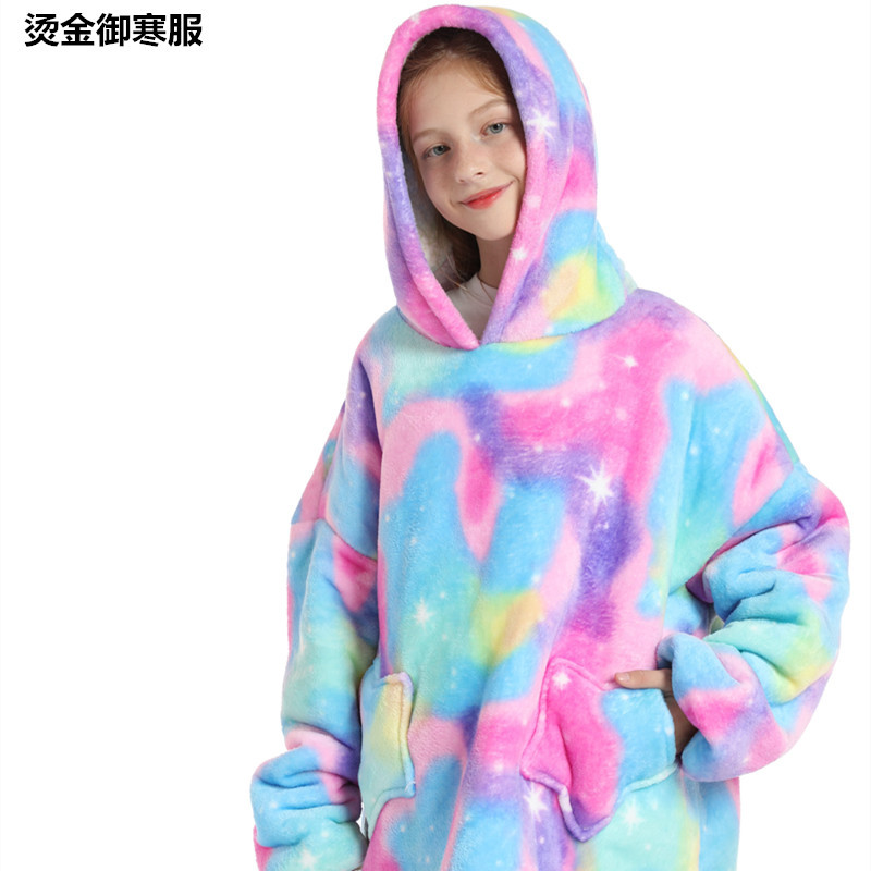 크로스보더 프린트 레이지웨어 풀오버 플리스 후드 잠옷 TV 담요 야외용 면옷 방한복 만화 캐릭터 보온복