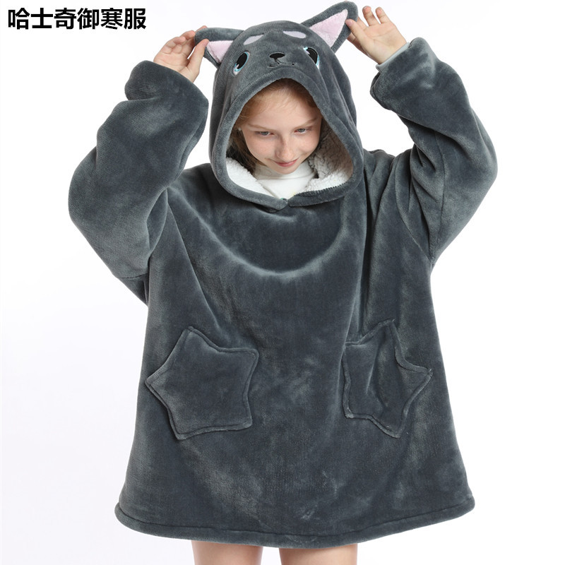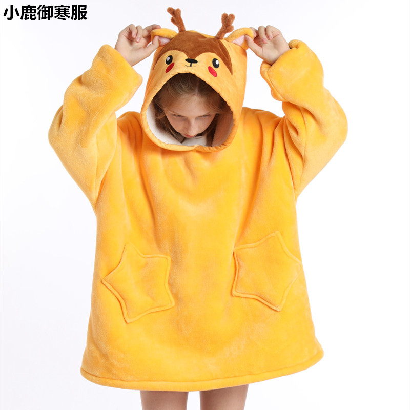 크로스보더 프린트 레이지웨어 풀오버 플리스 후드 잠옷 TV 담요 야외용 면옷 방한복 만화 캐릭터 보온복스토어 가기