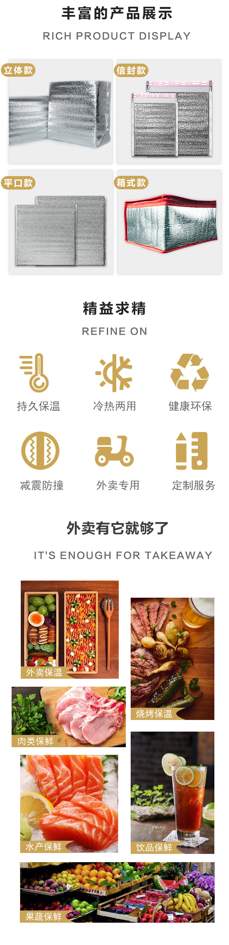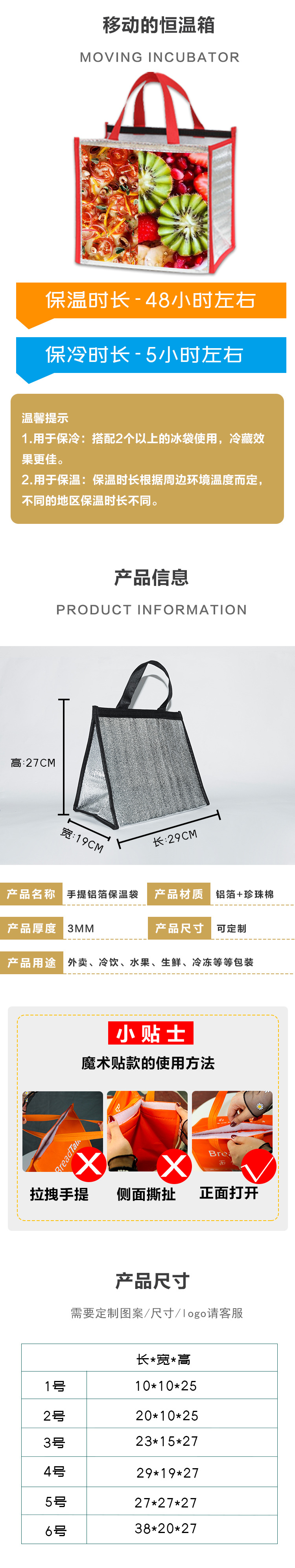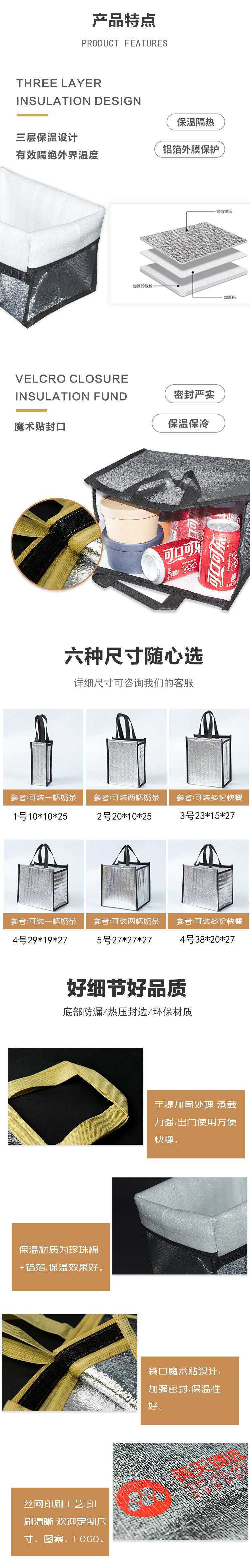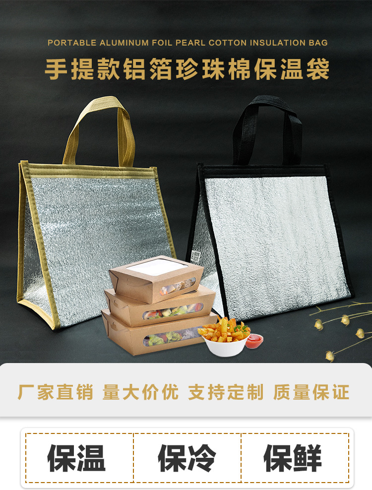 테이크 아웃 입체 휴대용 진주 면 절연 가방 두꺼운 바베큐 우유 차 털이 게 냉장 실버 알루미늄 호일 포장 가방
