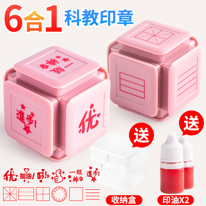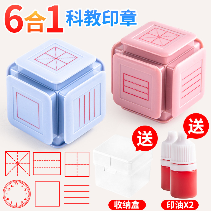 학생 Tian Zi Ge Seal 6-in-One 어린이 다기능 학습 병음 오류 수정 6 면 칭찬 인감 도매