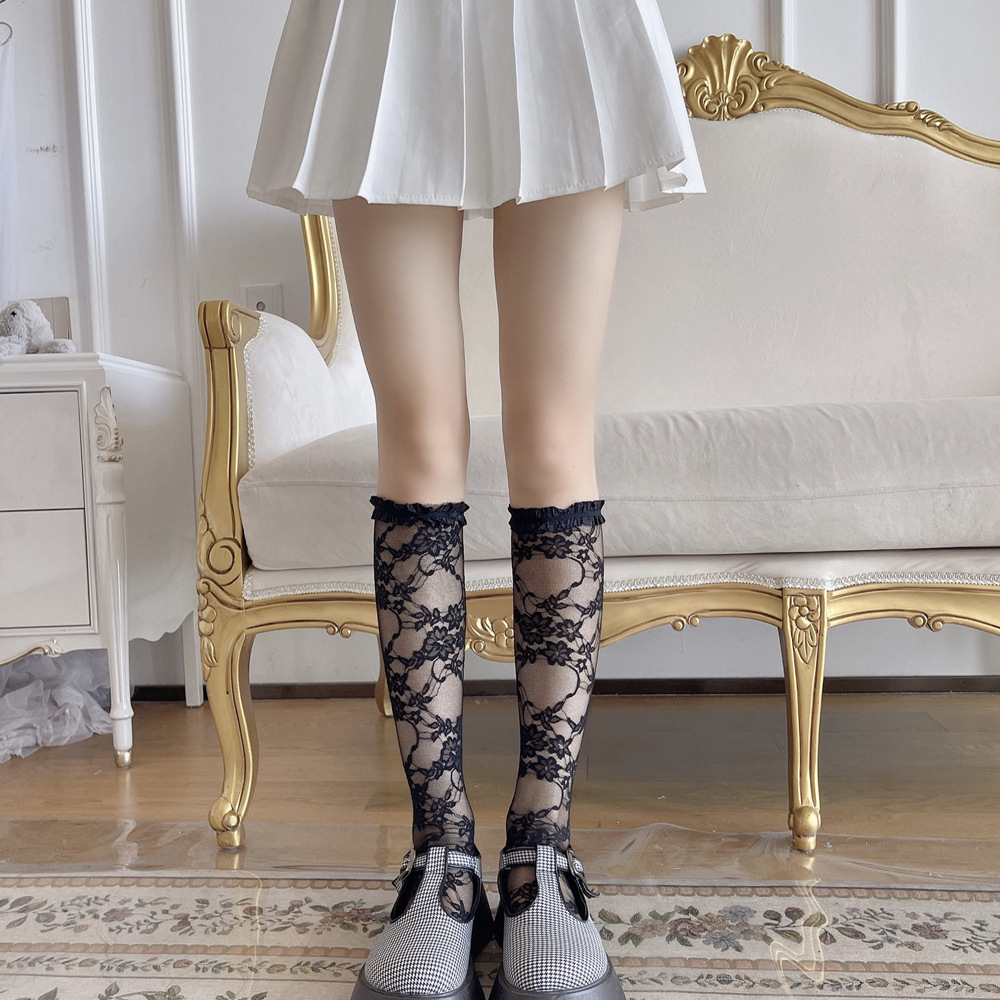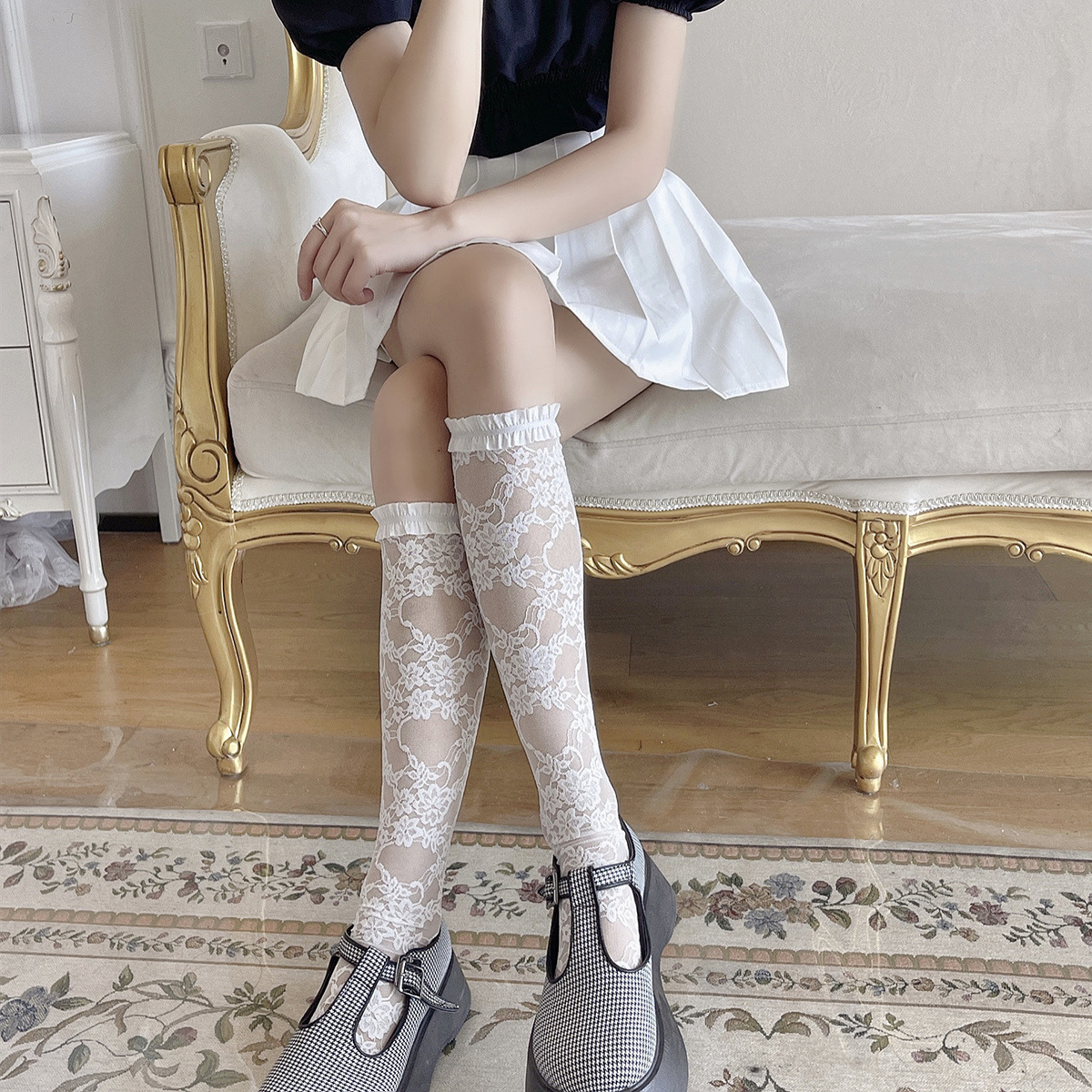 일본식 빈티지 화이트 중공 레이스 꽃 어린이를위한 작은 다리 양말 로리타 JK 귀여운 작은 레이스 중간 다리 양말