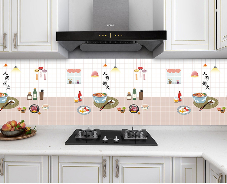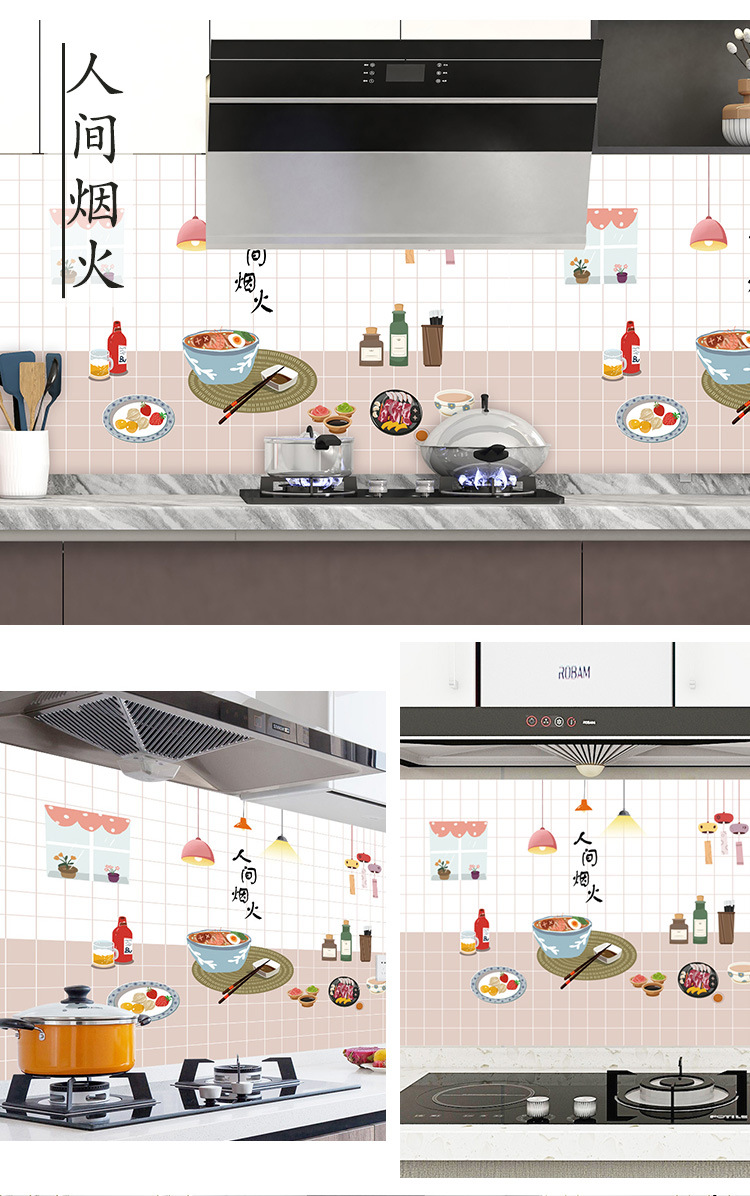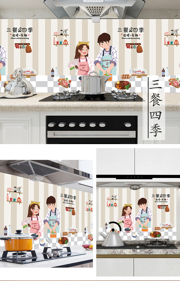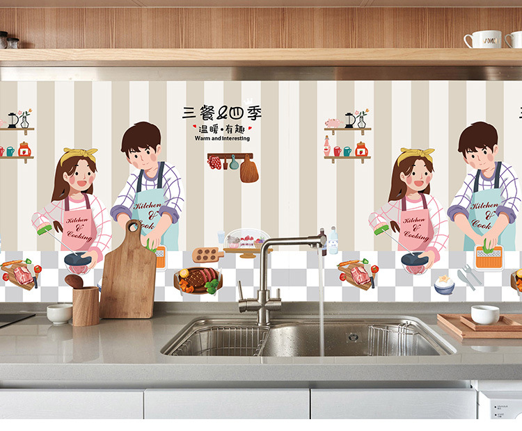 새로운 만화 내유성 스티커 주방 방수 내유성 스티커 알루미늄 호일 고온 스토브 벽 스티커스토어 가기