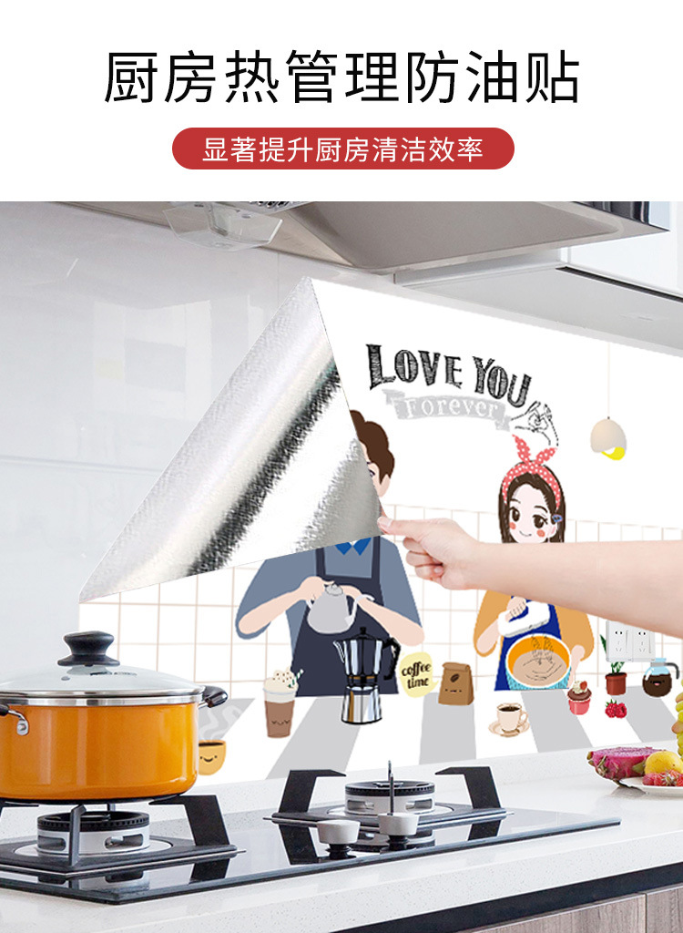 새로운 만화 내유성 스티커 주방 방수 내유성 스티커 알루미늄 호일 고온 스토브 벽 스티커