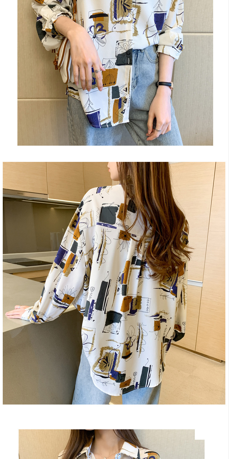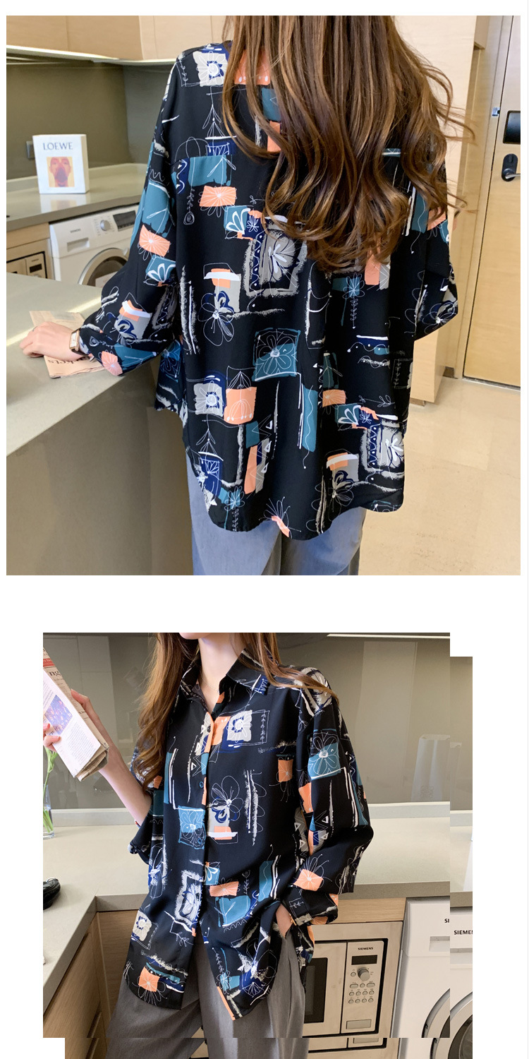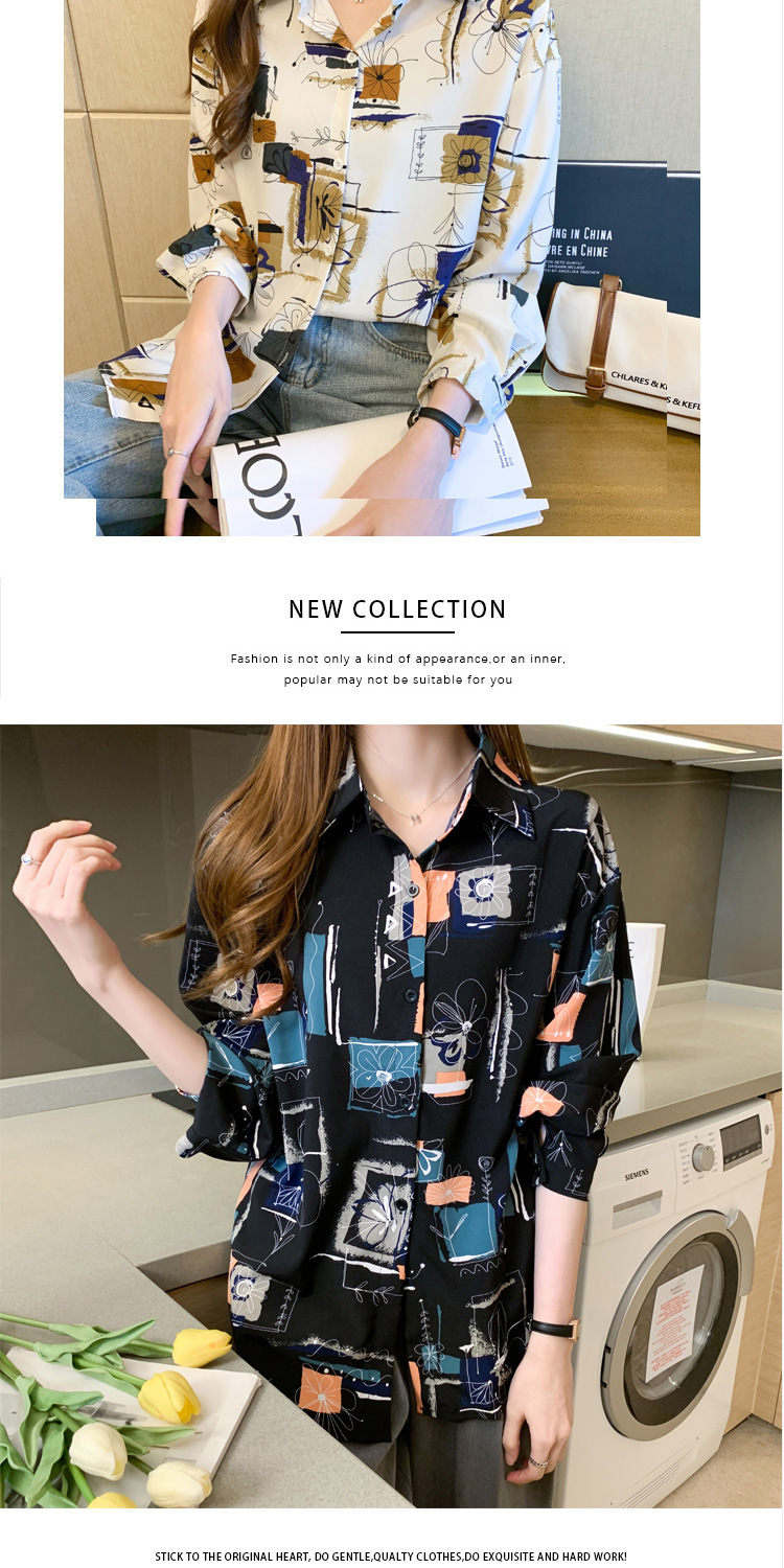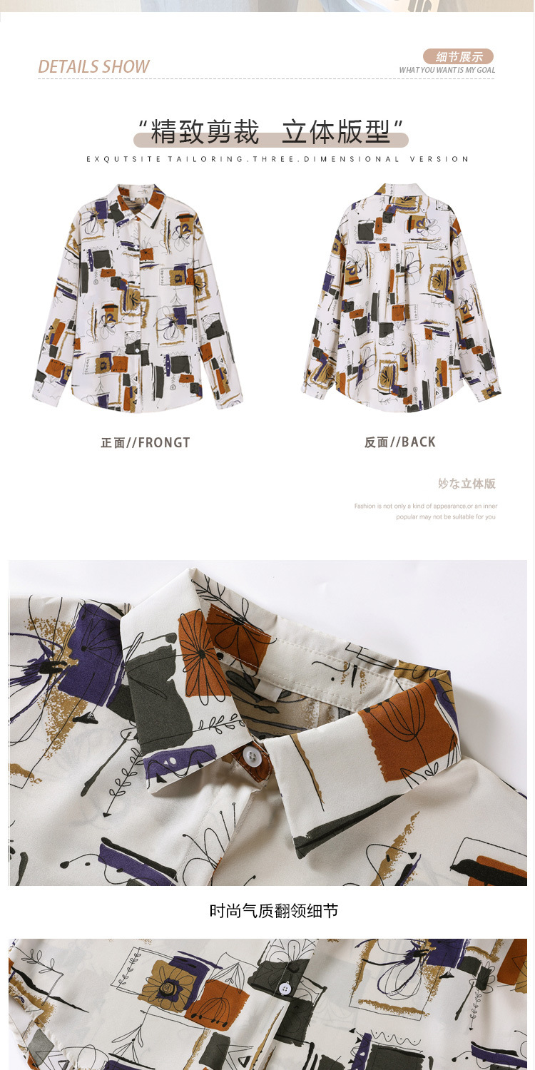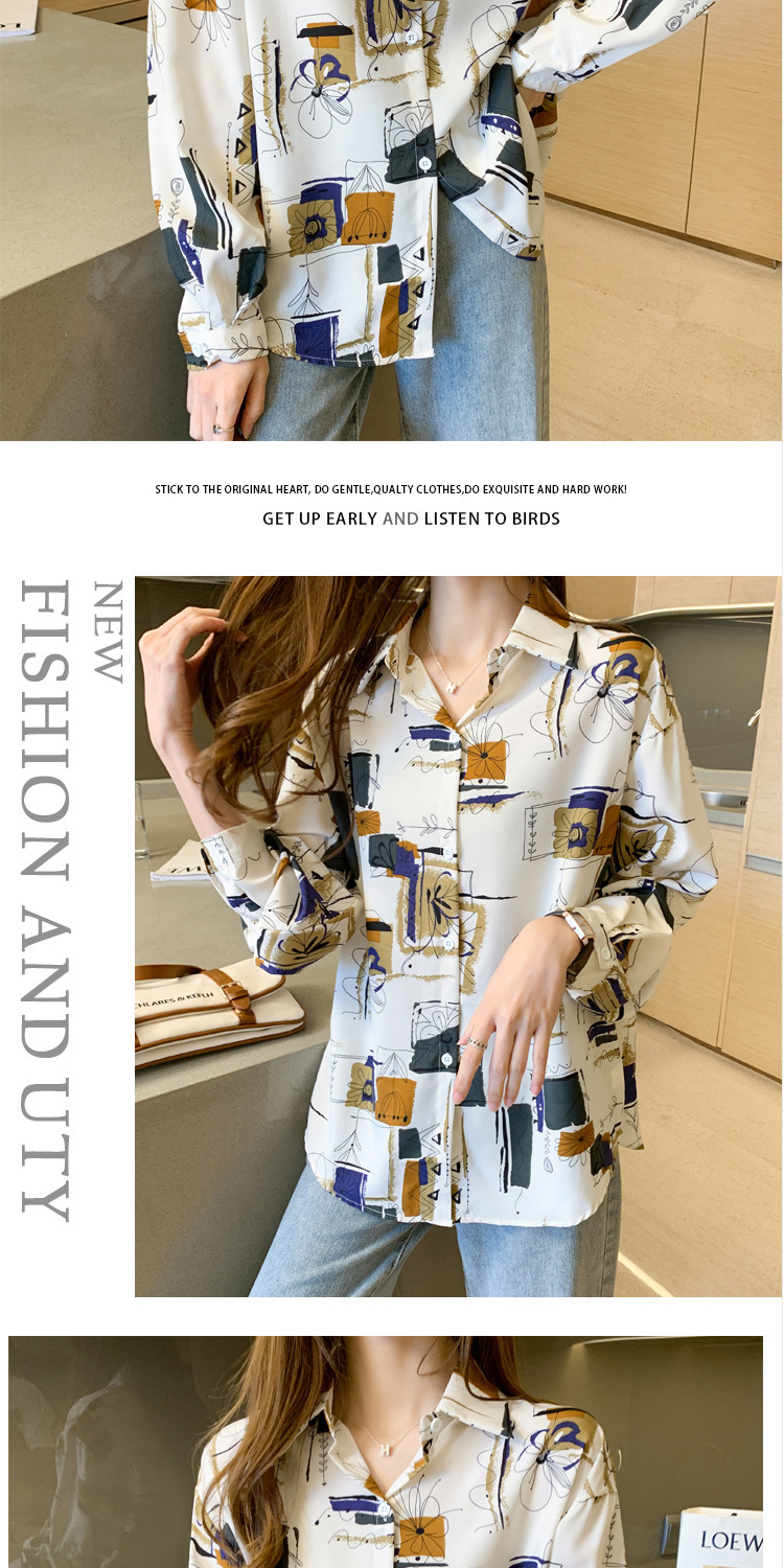 레트로한 홍콩 스타일의 쉬폰 긴팔 프린트 셔츠 여성 상의 2025 유행 루즈핏 디자인 틈새시장스토어 가기