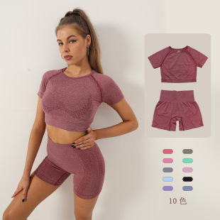 欧美无缝针织点点两件套文胸背心长裤套装女春夏健身衣翘臀瑜伽服   欧美无缝点点两件套短袖长裤套装女批发提臀弹力运动健身瑜伽服   欧美无缝点点两件套长袖长裤健身套装女高腰紧身运动跑步瑜伽服   欧美亚马逊无缝瑜伽服女套装专业运动跑步健身服短袖短裤两件套