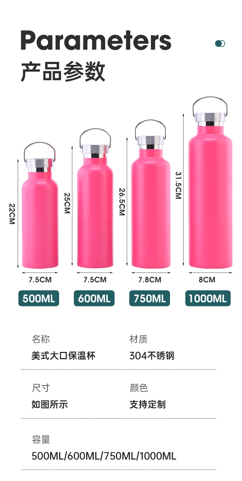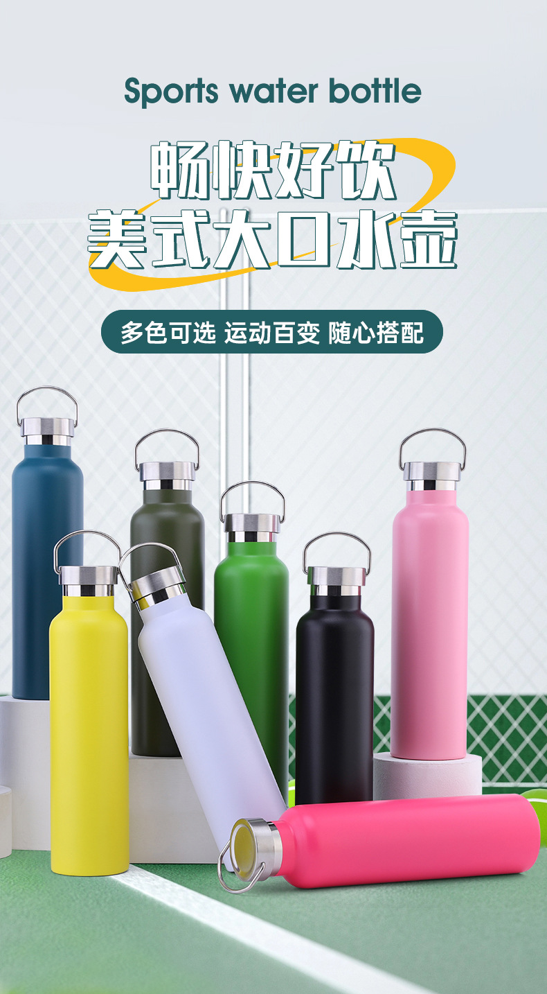 미국식 대형 휴대용 보온병 컵 304 스테인레스 스틸 스포츠 물병 야외 사이클링 물병 휴대용 등산 공간 물병