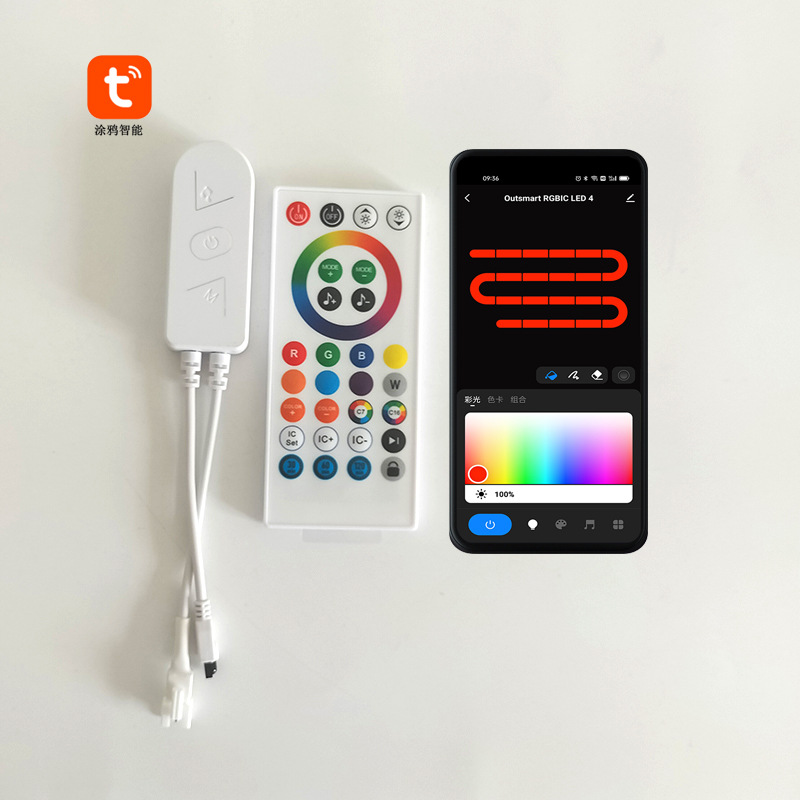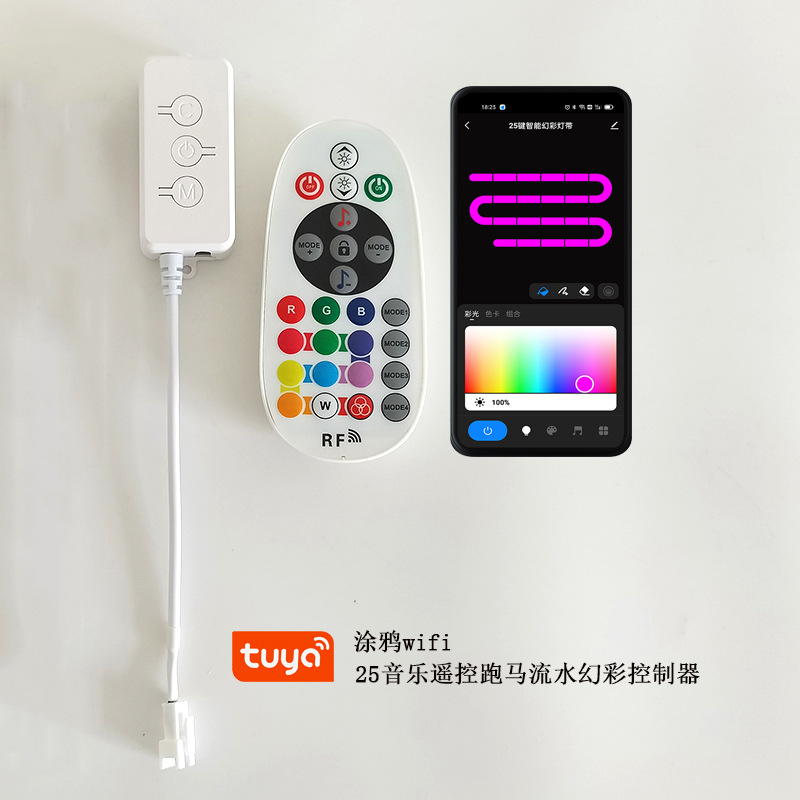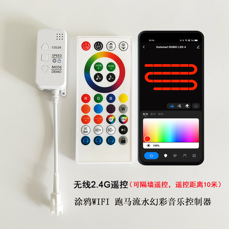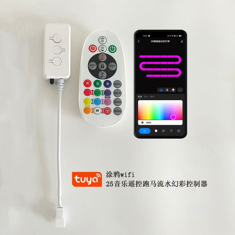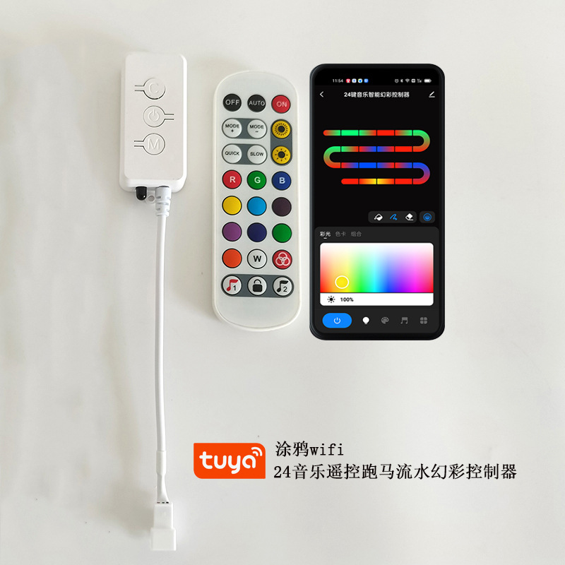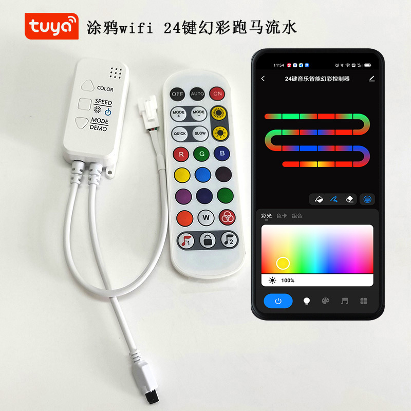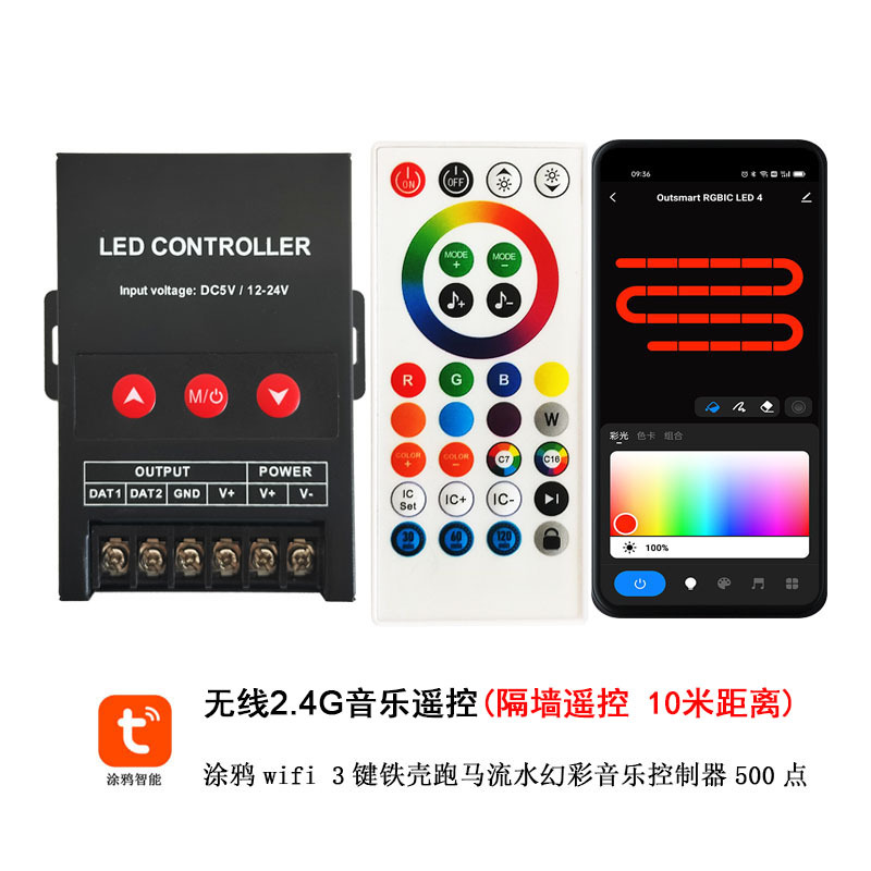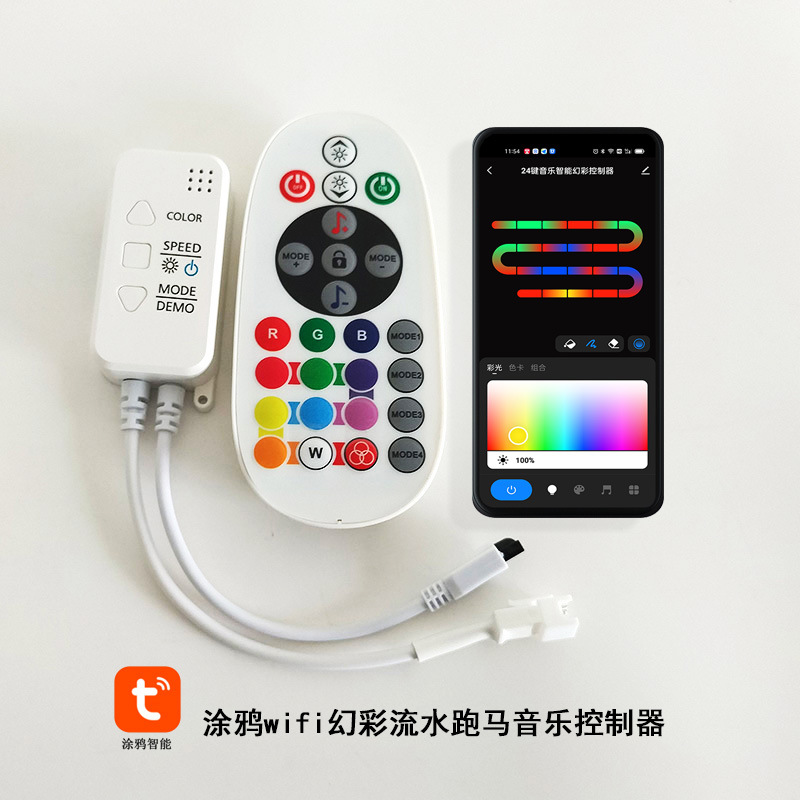 涂鸦智能wifi幻彩控制器红外遥控2811跑马流水1903灯带音乐控制器