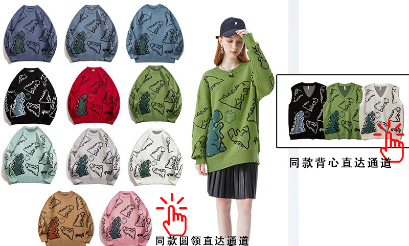 YWFG 국경 간 TEMU Xiyin Amazon Mens 공룡 느슨한 올 매치 홍콩 스타일 Ins 니트 카디건 스웨터스토어 가기