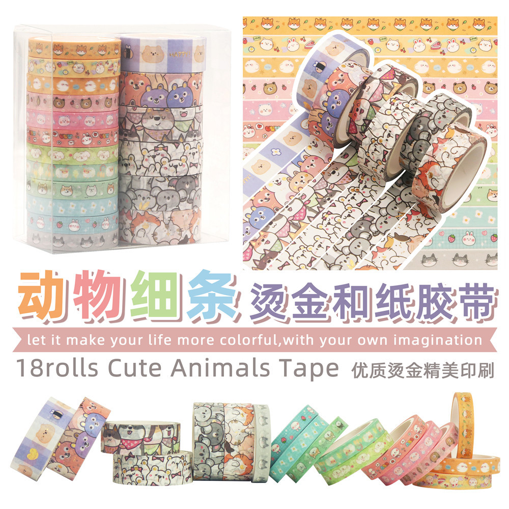 외국 무역 공급원 일본 종이 테이프 금박 만화 귀여운 동물 얇은 스트립 DIY 장식 테이프 크로스보더 스티커스토어 가기