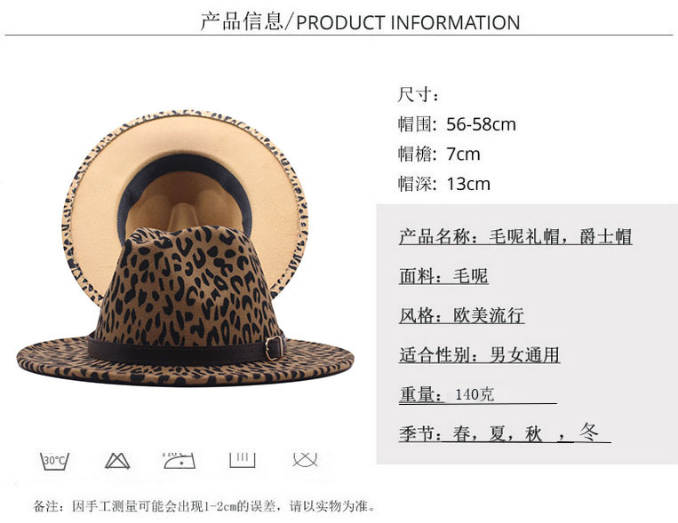 유럽과 미국의 타이 다이 패션 남성과 여성의 의식 모자 가을과 겨울 재즈 모자 국경 해외 무역 모직 펠트 모자 큰 챙 재즈 모자