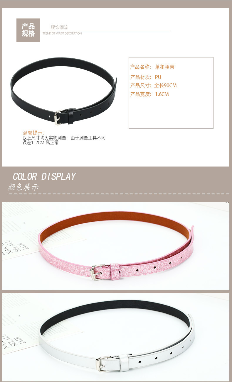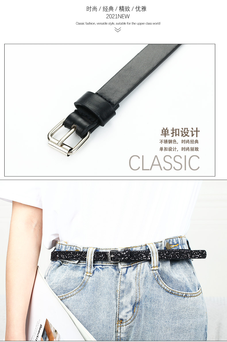 여성용 부드러운 가죽 벨트 패션 장식 다목적 학생 블랙 핀 버클 어린이 한국어 버전 작은 향기 간단하고 얇은 도매스토어 가기