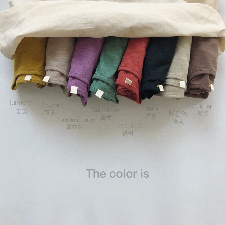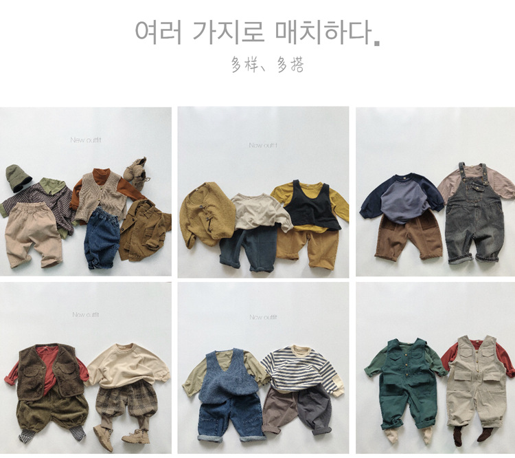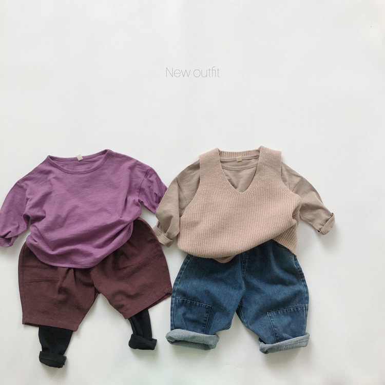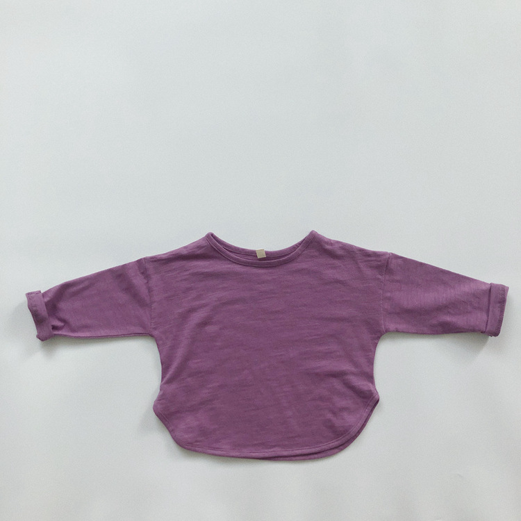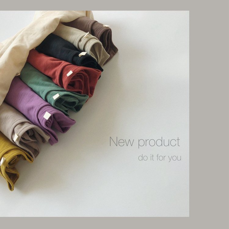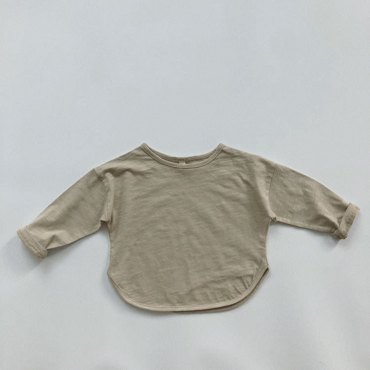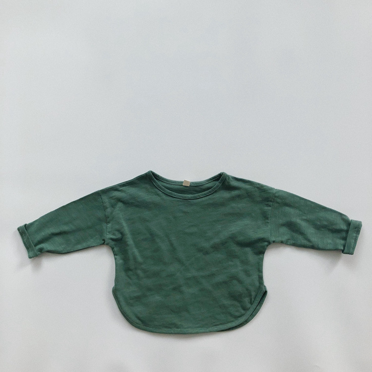 모란디 기본 가을 새로운 어린이 한국 베이스 셔츠 소년 소녀 슬러브 코튼 베이스 셔츠를위한 크루넥 탑스토어 가기