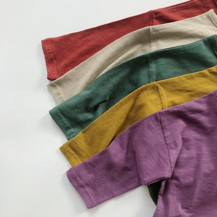 모란디 기본 가을 새로운 어린이 한국 베이스 셔츠 소년 소녀 슬러브 코튼 베이스 셔츠를위한 크루넥 탑