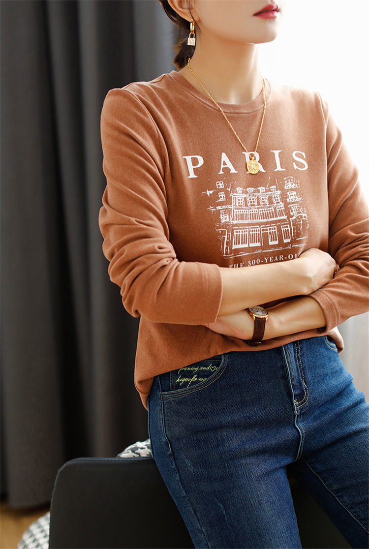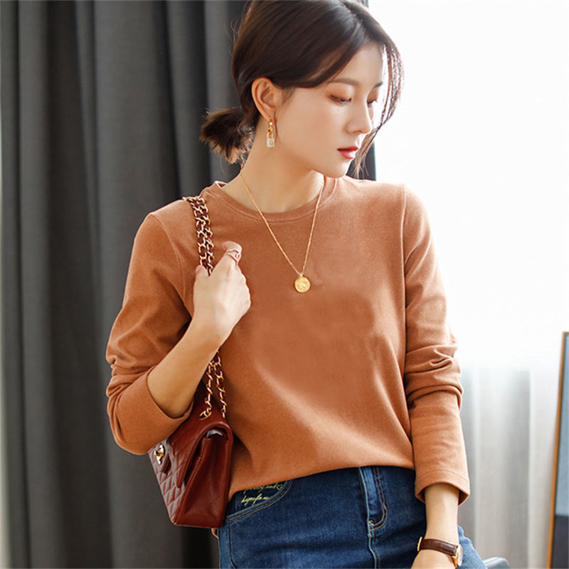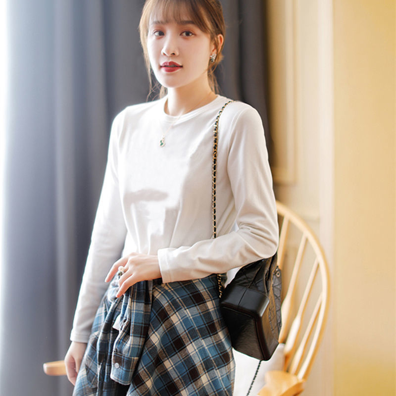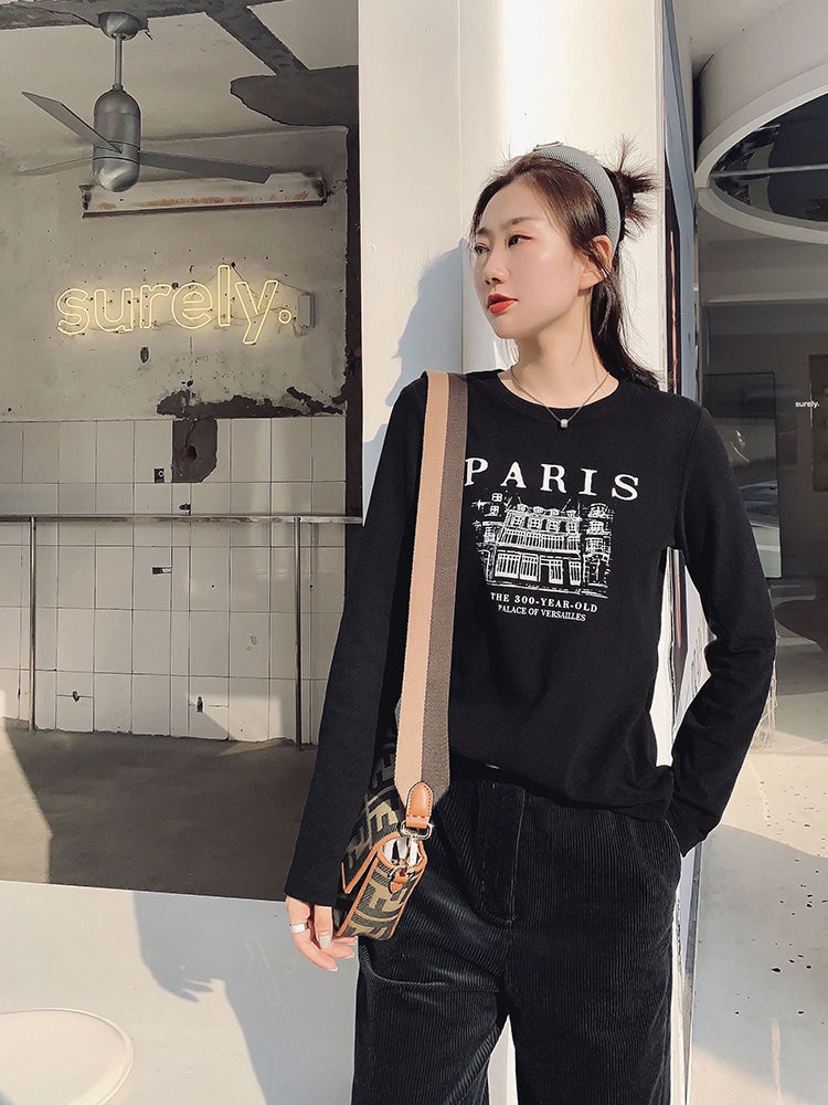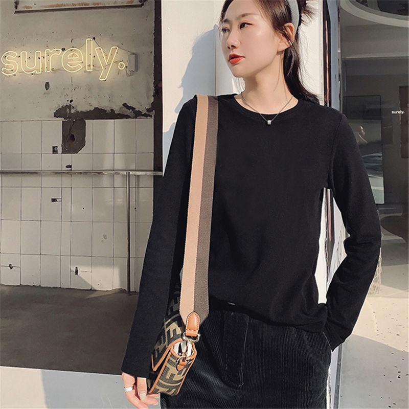 가을과 겨울 외국식 레터 샌딩 200kg 흰색 긴팔 티셔츠 여성 느슨한 조커 크루 넥 바텀 셔츠 재킷의 한국어 버전