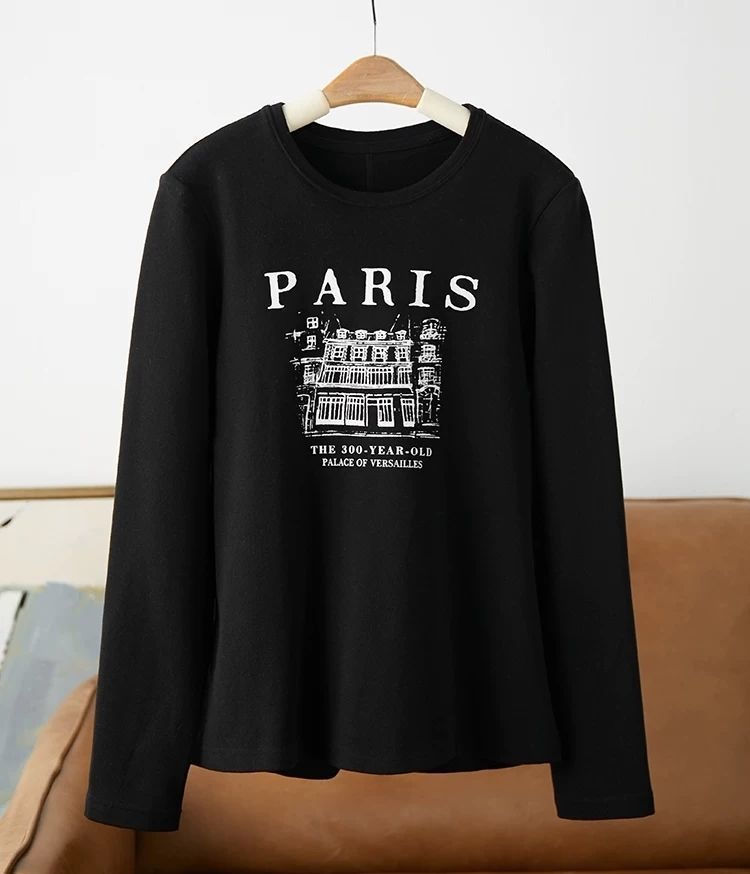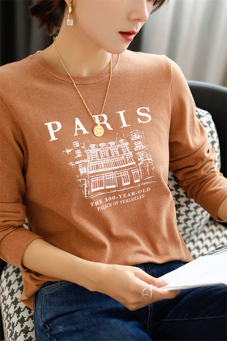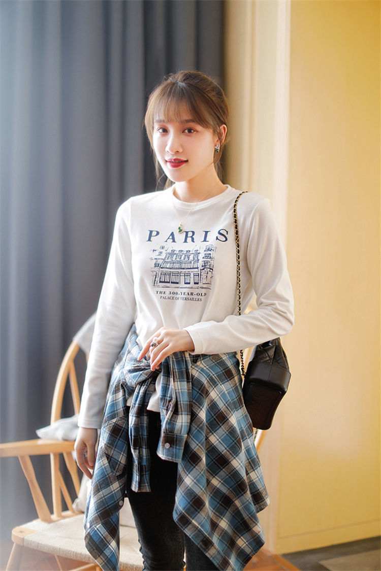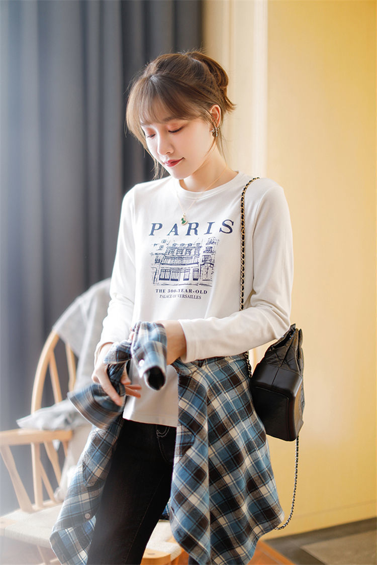 가을과 겨울 외국식 레터 샌딩 200kg 흰색 긴팔 티셔츠 여성 느슨한 조커 크루 넥 바텀 셔츠 재킷의 한국어 버전스토어 가기
