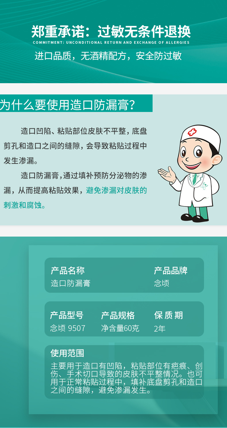 Ostomy 누출 방지 크림 무알코올 오토미 가방 섀시 누출 방지 접착제 누출 방지 케어 액세서리 크로스 보더 Nianqing 9507