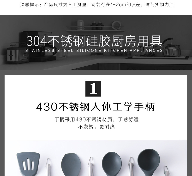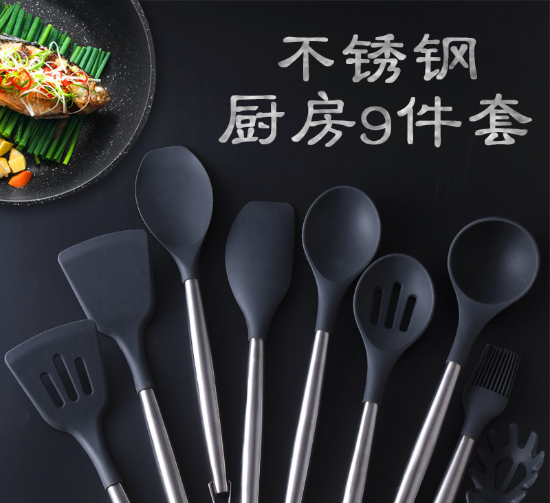 크로스보더 논스틱 실리콘 주걱 304 스테인리스 핸들 실리콘 요리 스푼 주걱 주방용품 공장 직공급스토어 가기