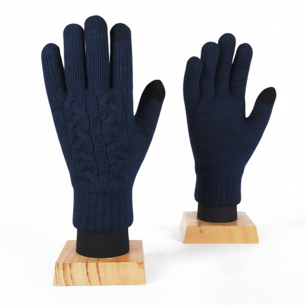 跨境爆款成人女男冬季双层触屏针织手套加绒加厚防寒骑行保暖手套
