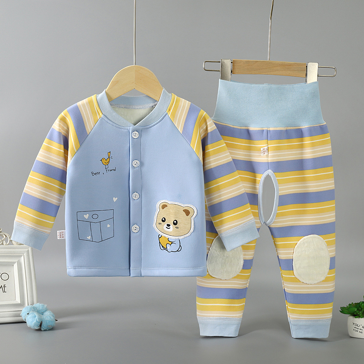 아기 따뜻한 세트 소년과 소녀 아기 기모 하이 웨이스트 세트 어린이 겨울 옷 가을 바지 카디건 가을 옷스토어 가기