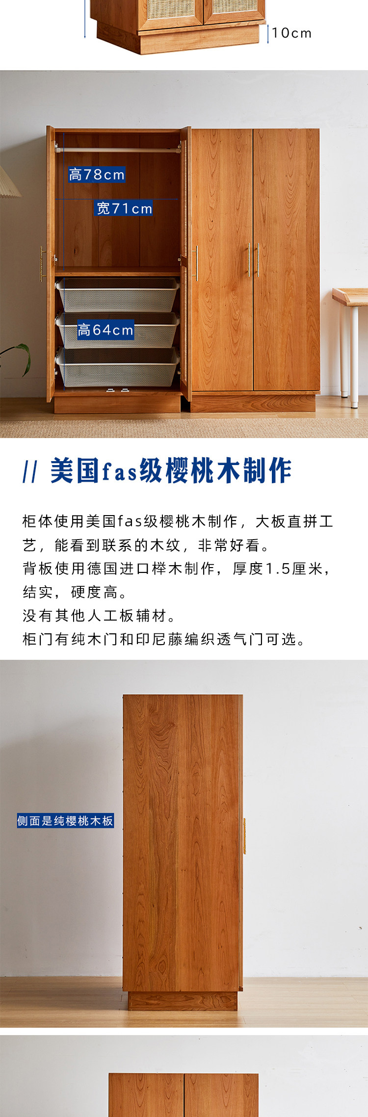 단단한 나무 침실 어린이 옷장 체리 우드 다층 수납 풀 세트 우드 왁스 오일 일본식 모던 콤비네이션 옷장스토어 가기