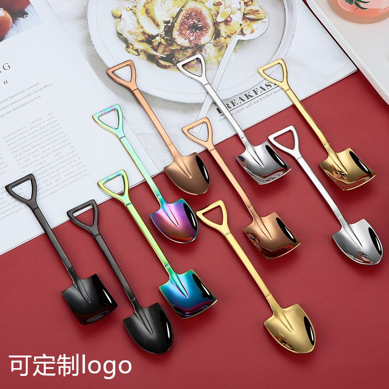 그물 빨간 창조적 인 빈티지 삽 커피 스푼 스테인레스 스틸 디저트 스푼 수박 스푼 아이스크림 케이크 스푼