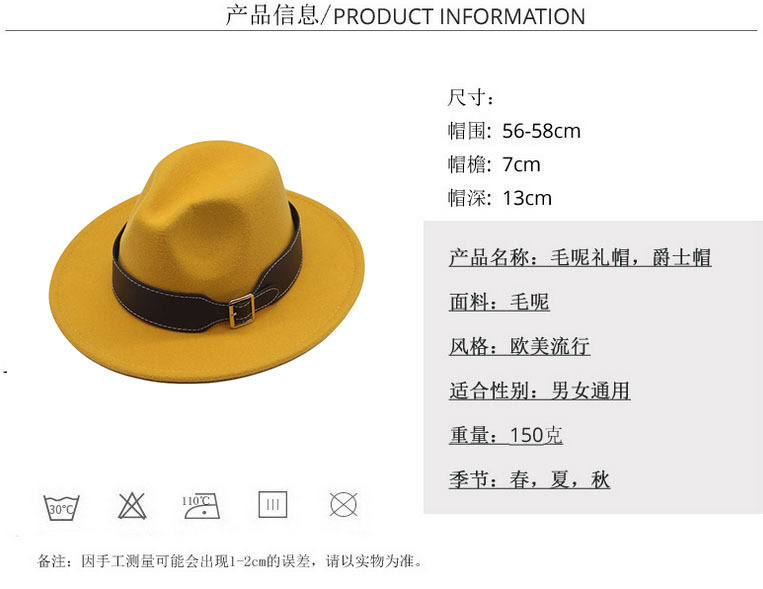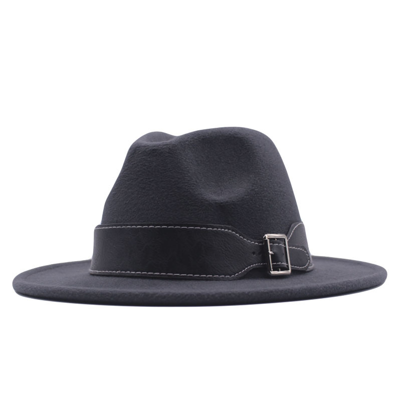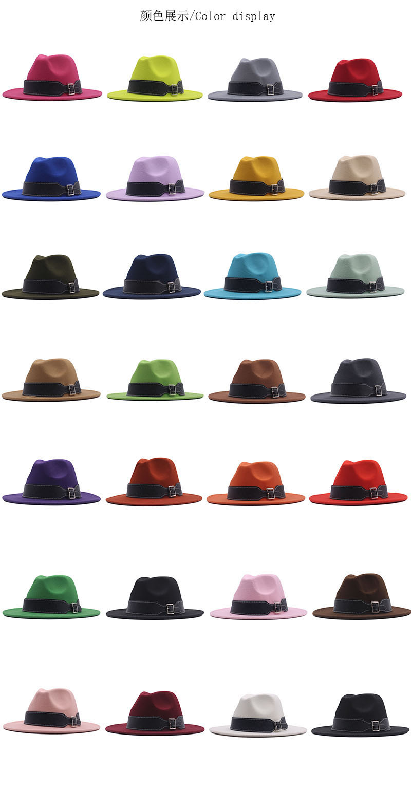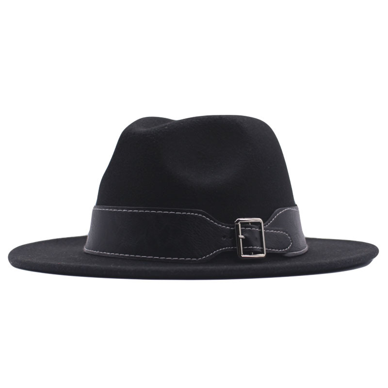 유럽과 미국의 대외 무역 가을과 겨울 남성과 여성의 큰 챙 모자 새로운 패션 모직 재즈 모자 영국 스타일 블랙 탑 햇