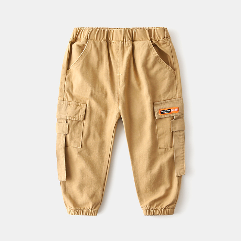 어린이 캐주얼 바지 도매 소년 봄과 가을 바지 아기 라벨 포켓 바지 한국 바지 머리카락 세대
