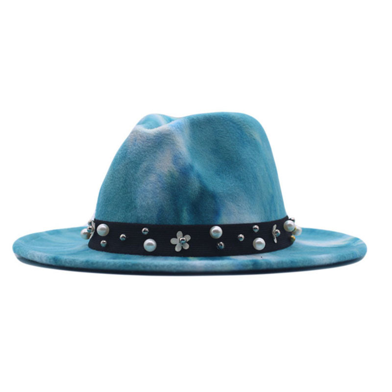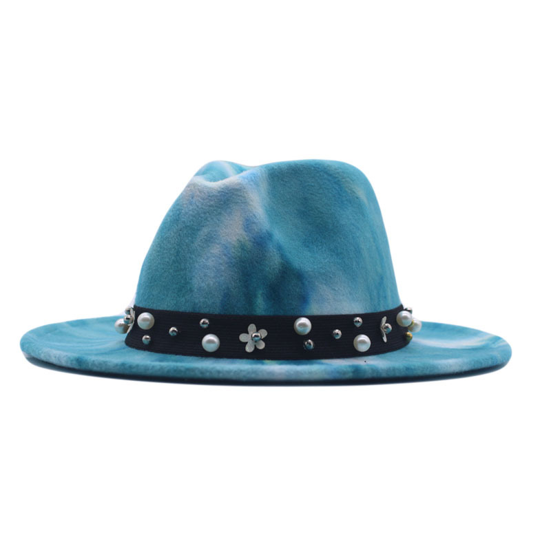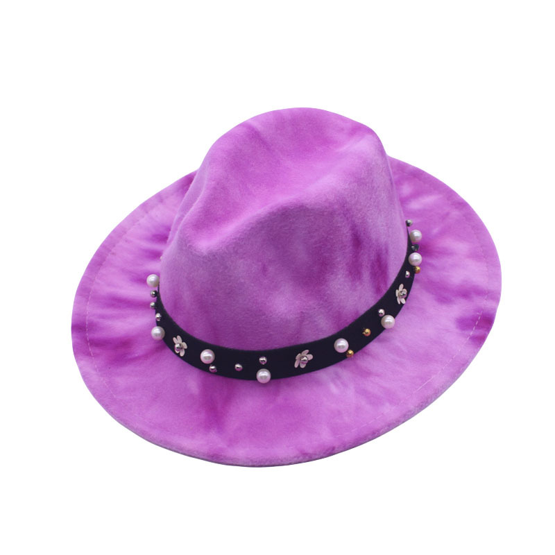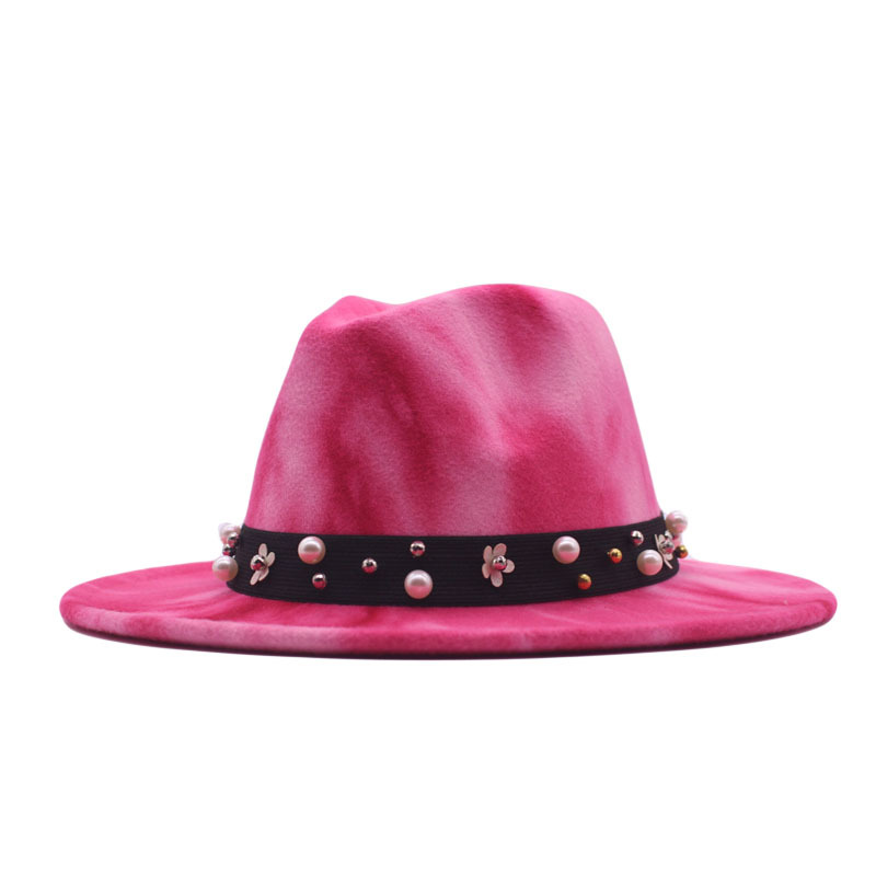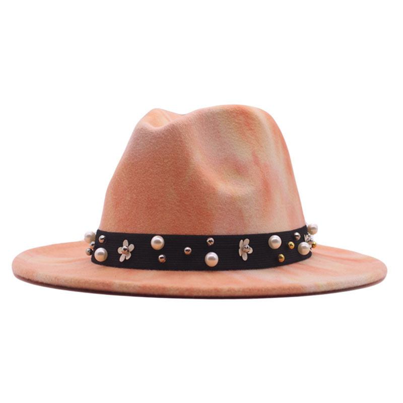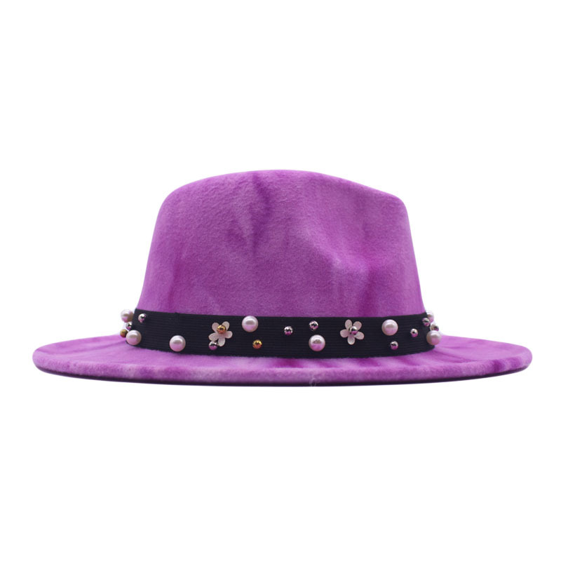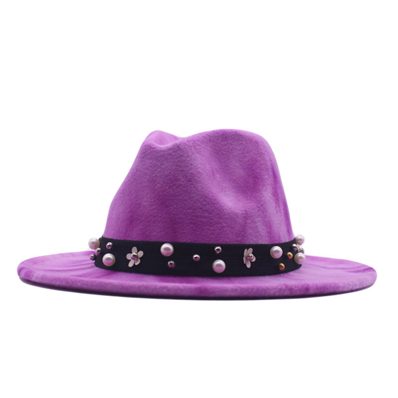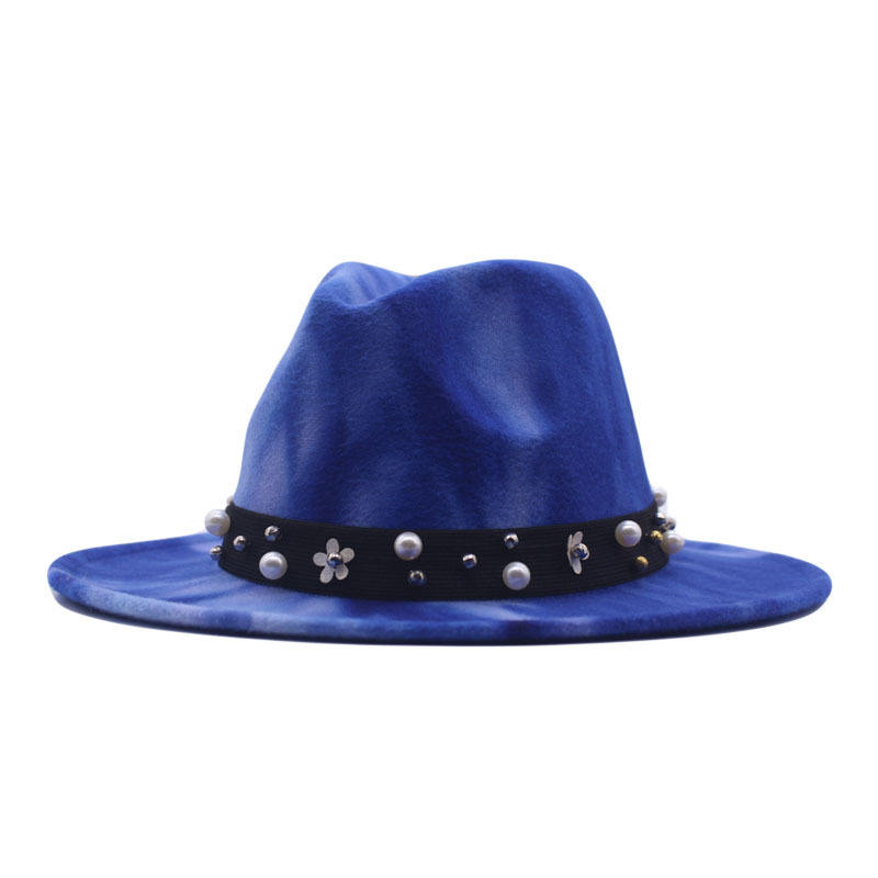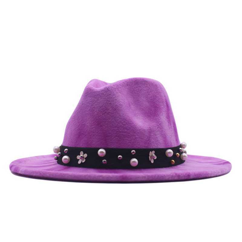 가을과 겨울 남성과 여성의 새로운 낙서 큰 챙 모자 패션 모직 재즈 모자 영국 스타일 진주 모자