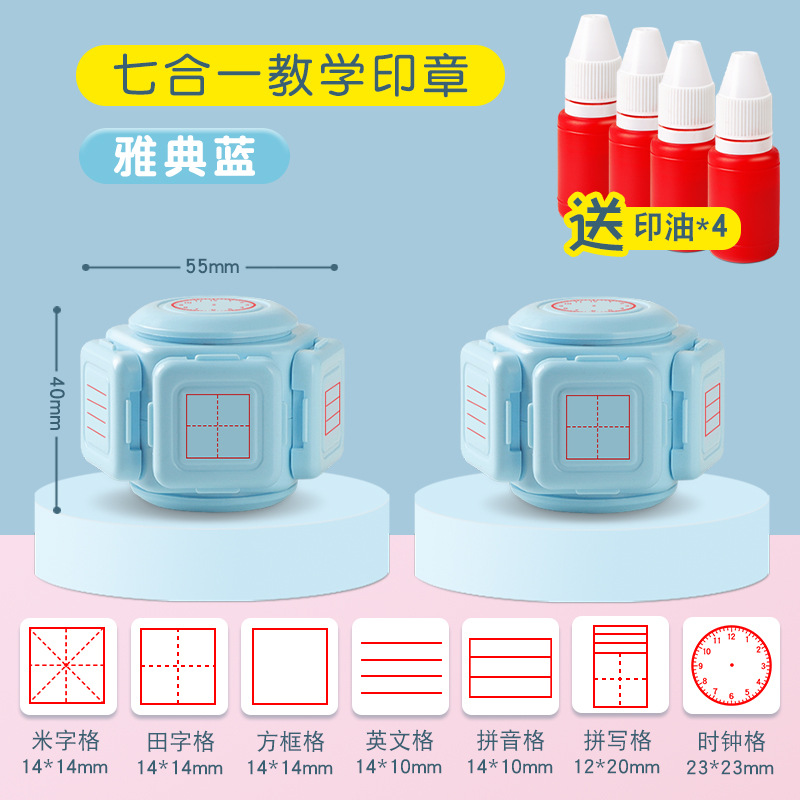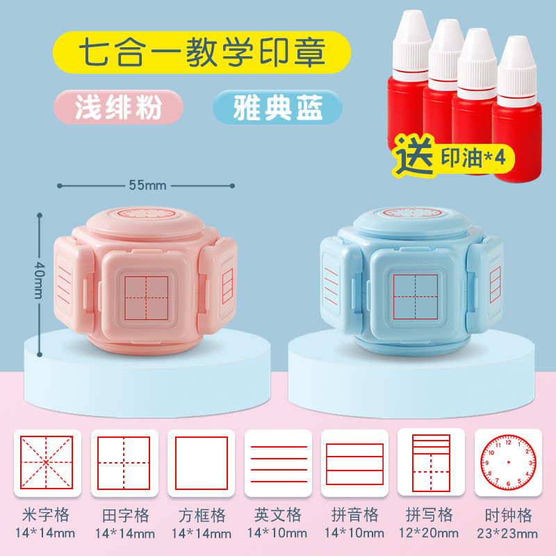 학생 Tian Zi Ge Seal 7 대 1 어린이 다기능 학습 병음 오류 수정 교사를위한 7 면 칭찬 인감스토어 가기