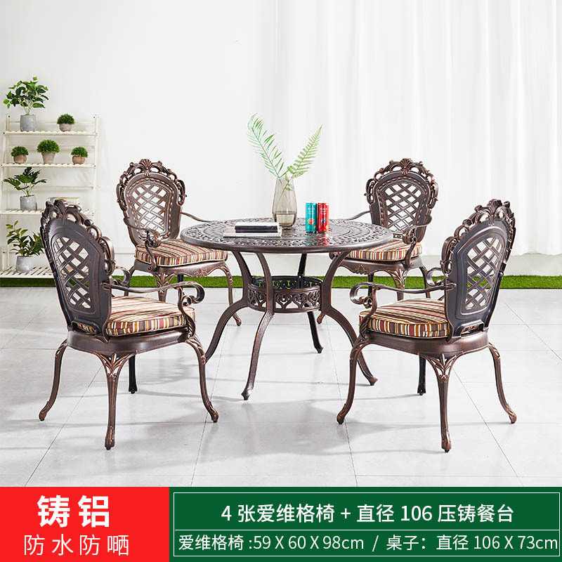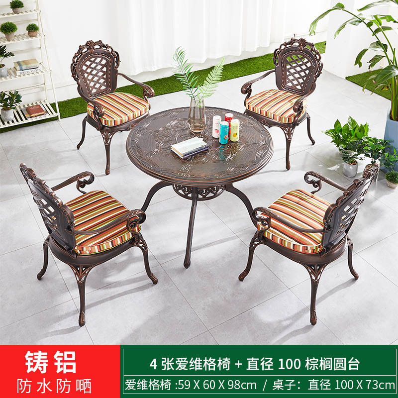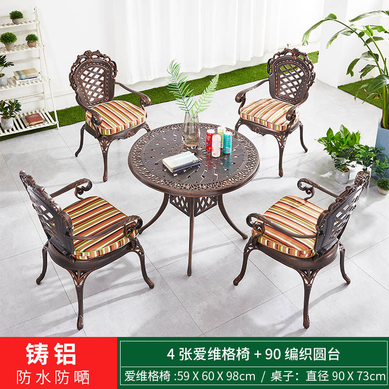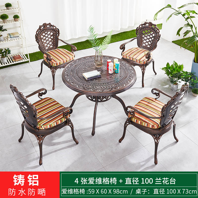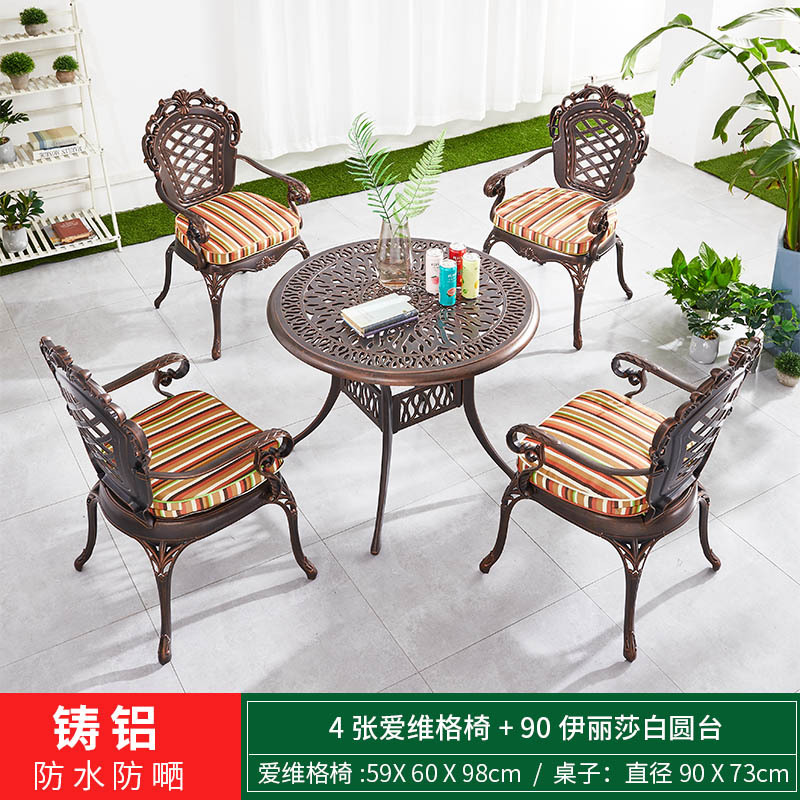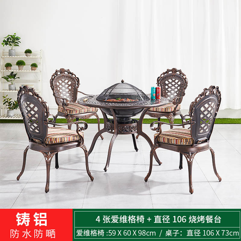 야외 캐스트 알루미늄 테이블과 의자 야외 안뜰 정원 야외 식탁 및 의자 조합 야외 발코니 레저 바베큐 스토브 테이블스토어 가기