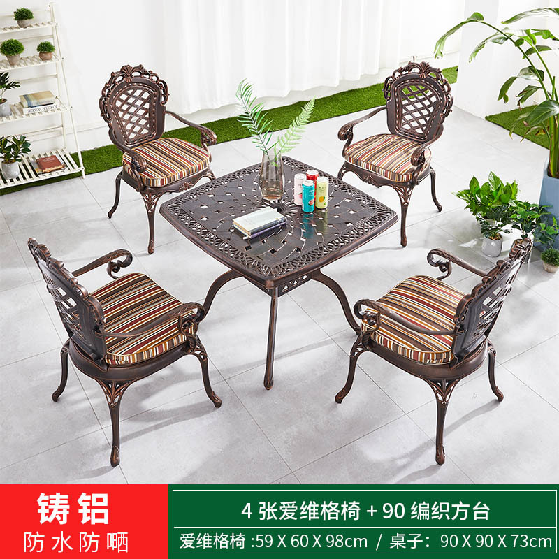 야외 캐스트 알루미늄 테이블과 의자 야외 안뜰 정원 야외 식탁 및 의자 조합 야외 발코니 레저 바베큐 스토브 테이블