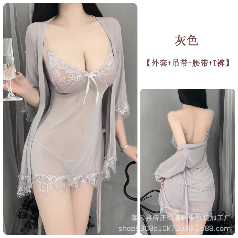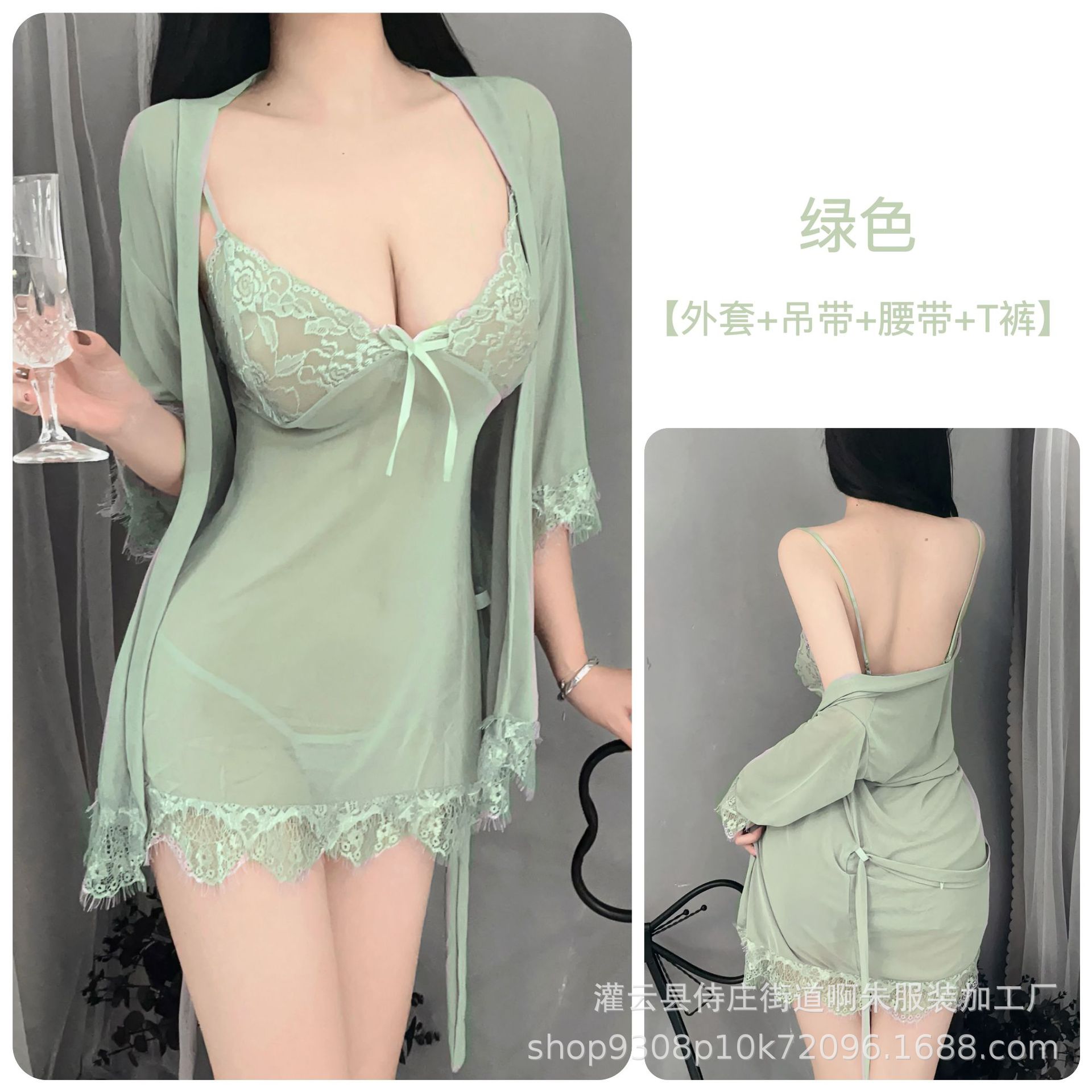 섹시한 슬링 잠옷 유럽과 미국의 3 피스 레이스 성인 란제리 관점 의류 대외 무역 여성의 메쉬 잠옷스토어 가기