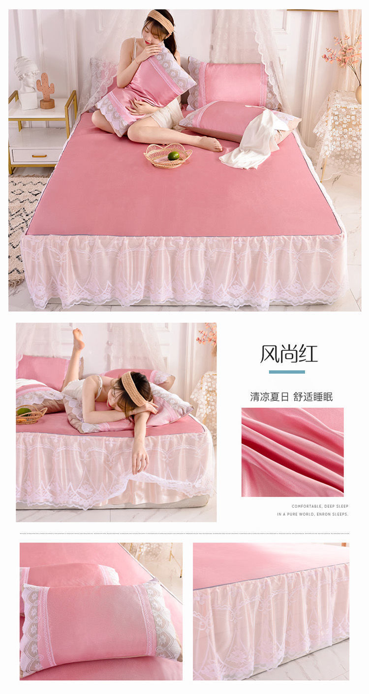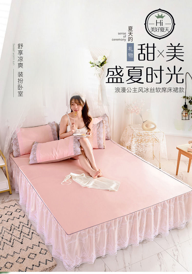 여름 아이스 실크 매트 침대 스커트 3 피스 공주 바람 빨 접이식 1.5/1.8/2.0M 에어컨 소프트 매트 기계 세척스토어 가기