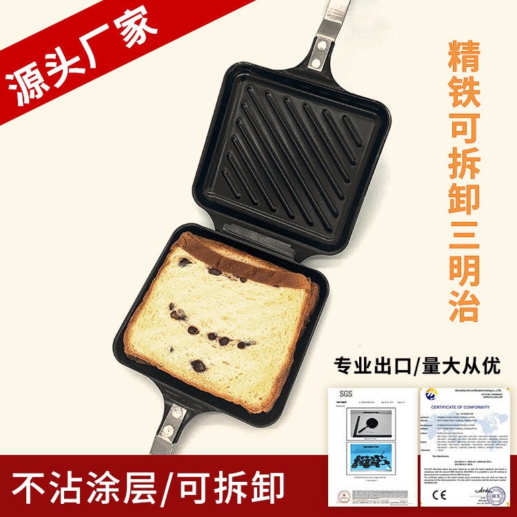 비 스틱 코팅 아침 식사 기계 가정용 전자기 가스 양면 가열 샌드위치 토스트 빵 베이킹 팬 금형 베이킹 팬스토어 가기