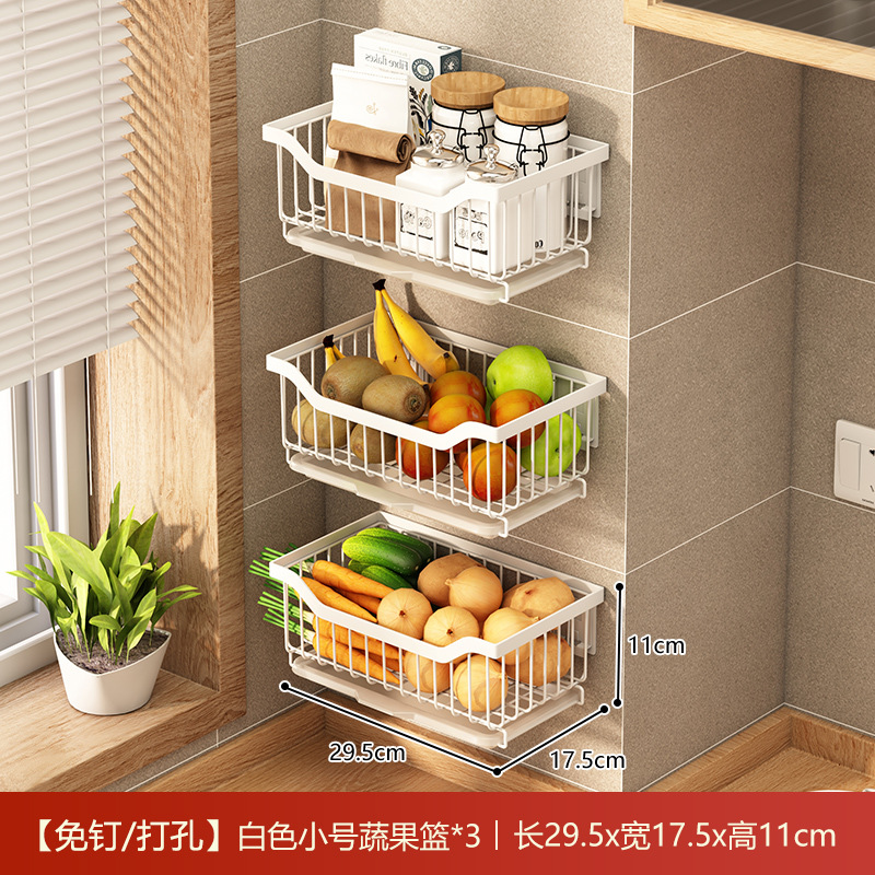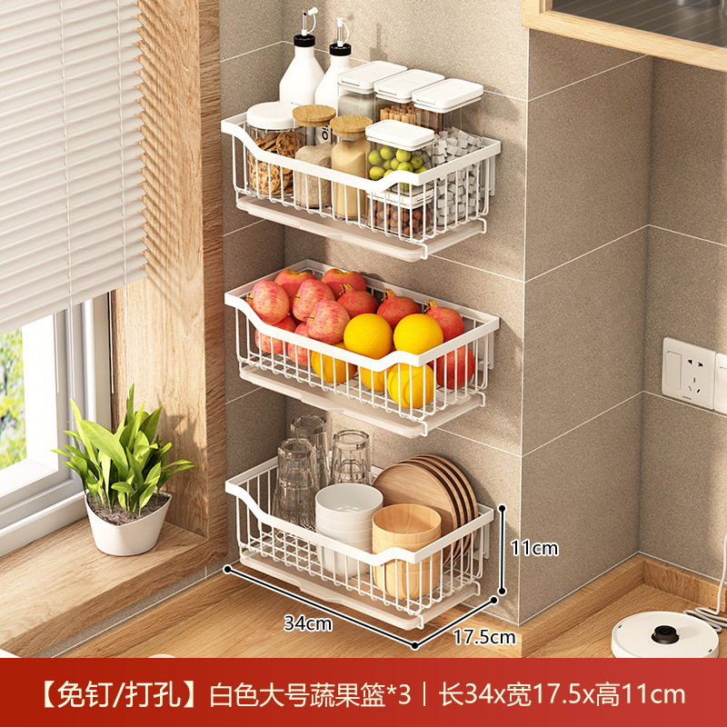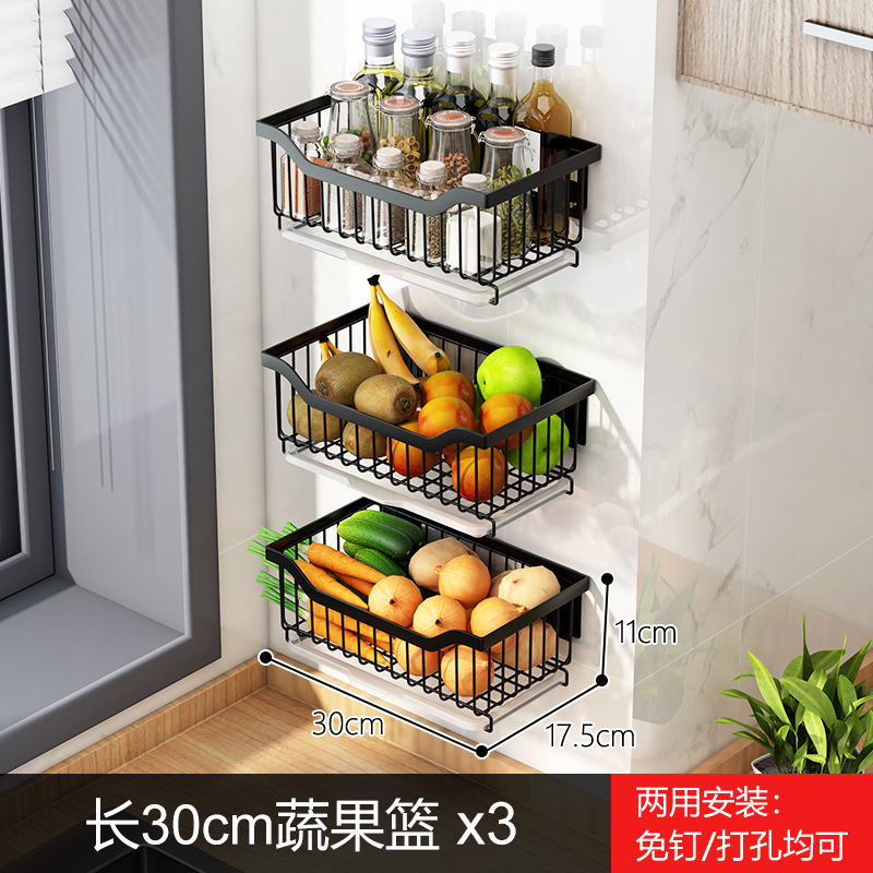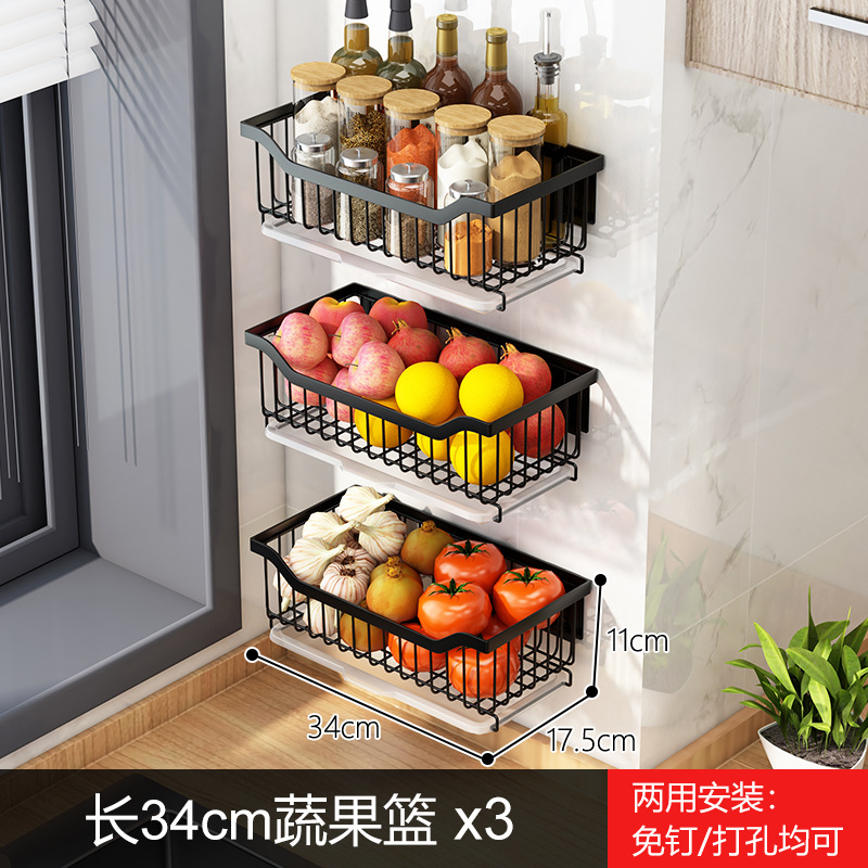 벽걸이 형 주방 수납 랙 조미료 랙 용품 보관 랙 스테인레스 스틸 비 천공 랙 식품 랙 과일 선반
