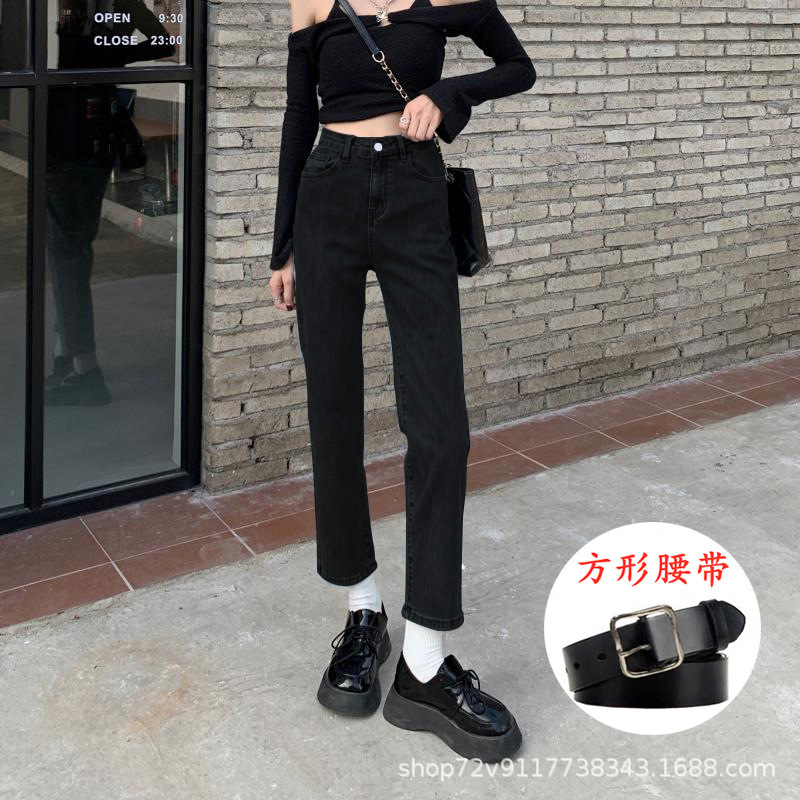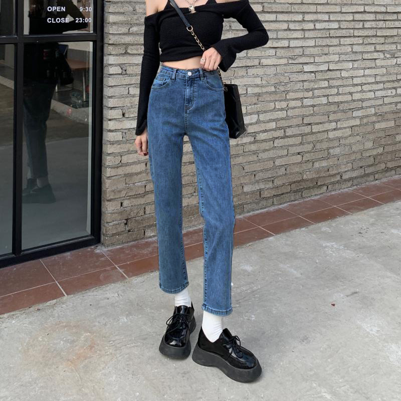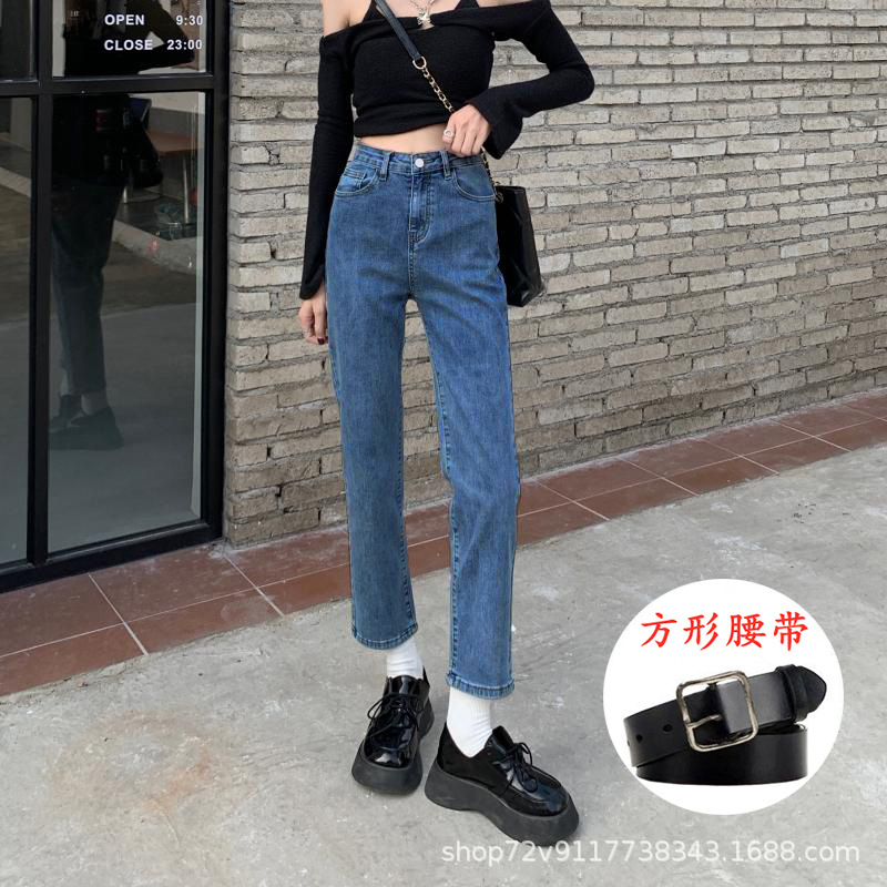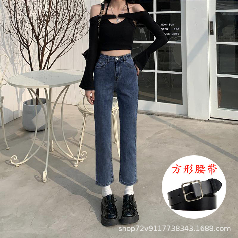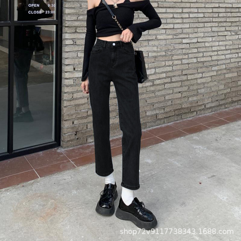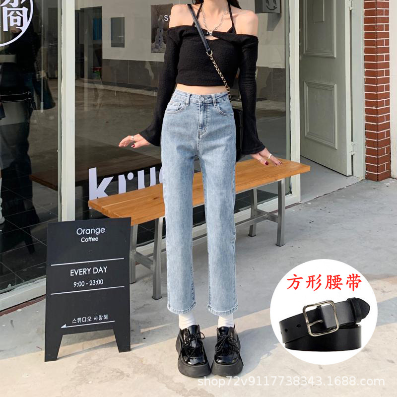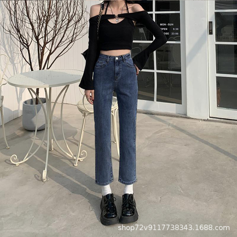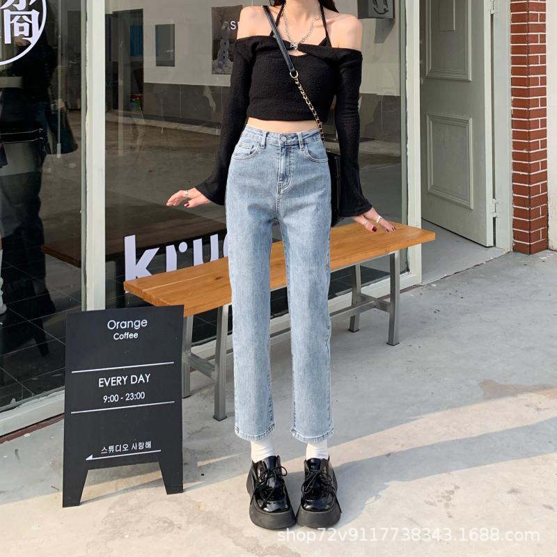 2024 봄 새로운 느슨한 스트레이트 청바지 여성의 높은 허리 넓은 다리 슬리밍 9 포인트 스트레치 청바지 한국어 버전스토어 가기