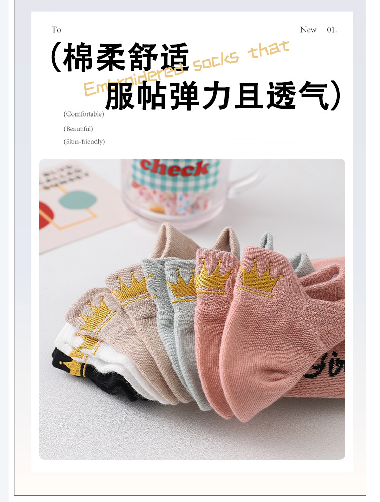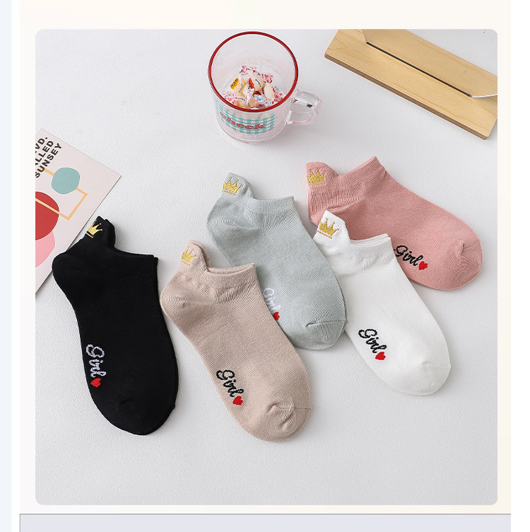 여성용 발 뒤꿈치 자수 크라운 발목 양말 여름 귀 리프팅 발 보호 여성 양말면 맞춤형 자수 여성 양말 재고스토어 가기