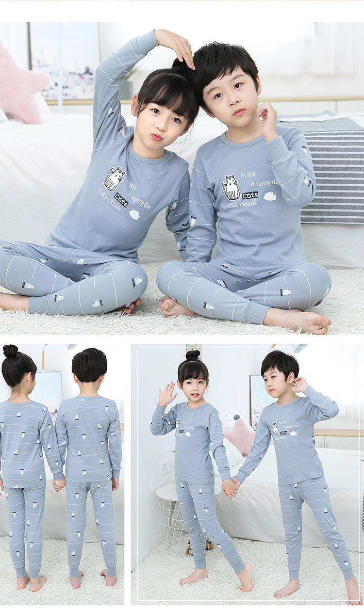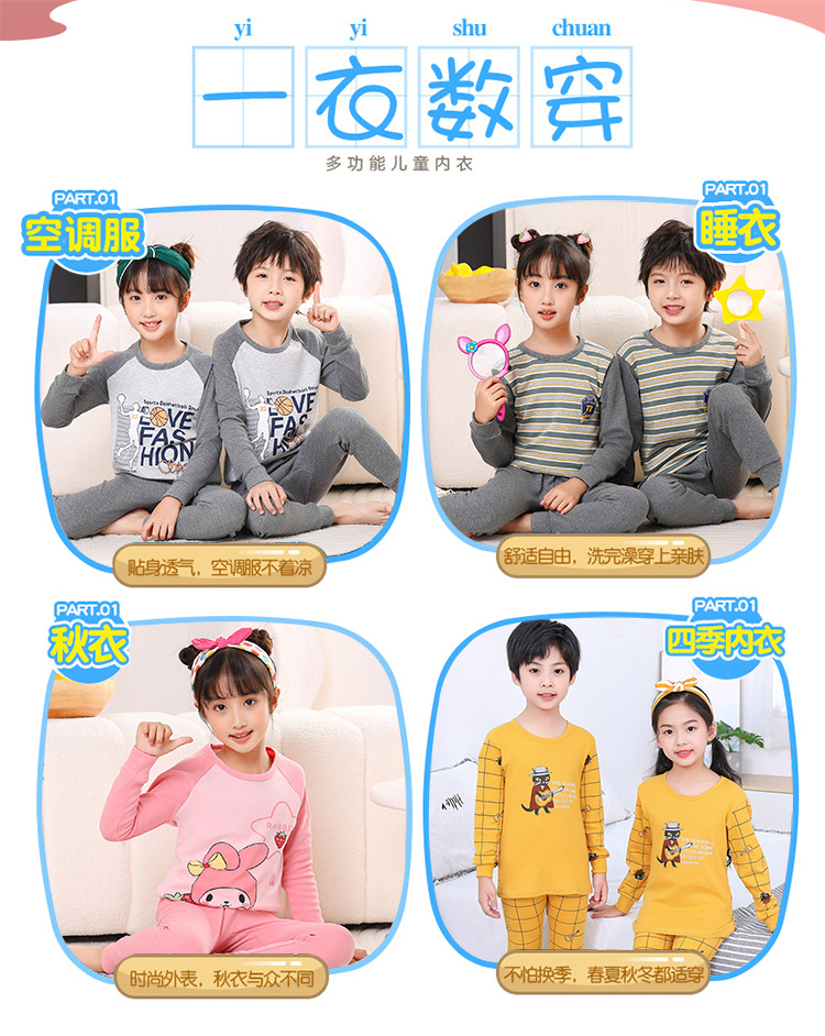 새로운 어린이 열 속옷 면 가을과 겨울 면 스웨터 가을 옷 긴 존스 세트 어린이 가정 옷 재고