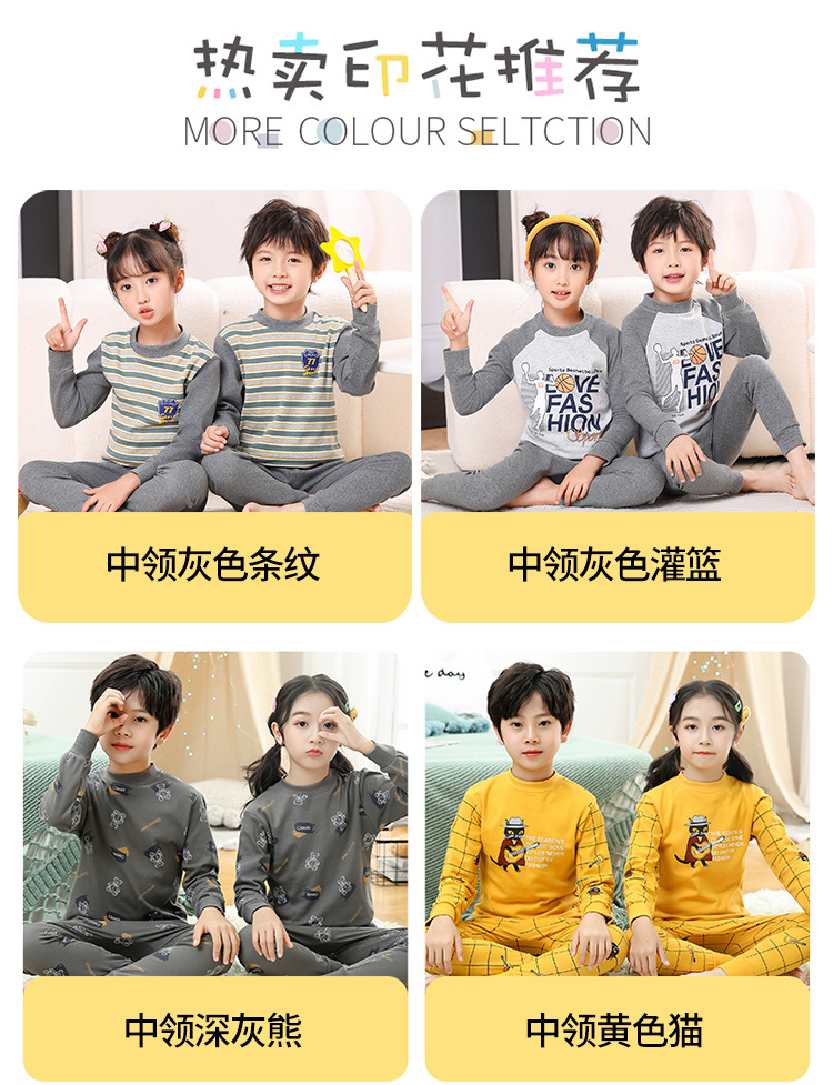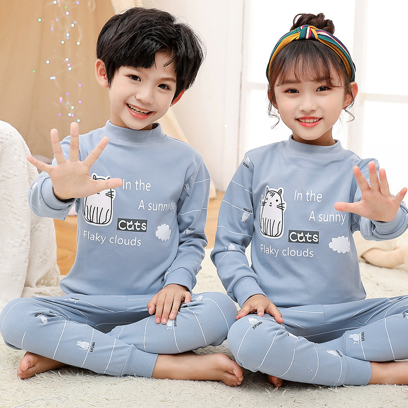 새로운 어린이 열 속옷 면 가을과 겨울 면 스웨터 가을 옷 긴 존스 세트 어린이 가정 옷 재고스토어 가기