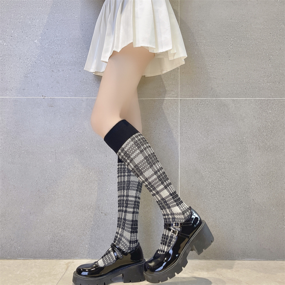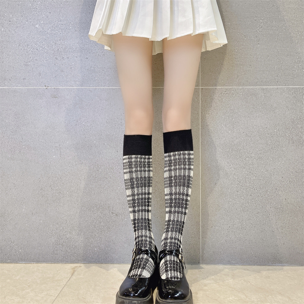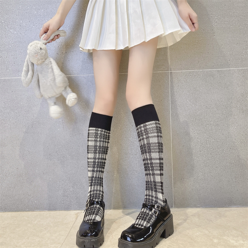 일본 인 면 니트 일반 사각 이중 바늘 나사 미끄럼 방지 커프 양말 압력 미용 다리 어린이를위한 중간 길이 양말스토어 가기
