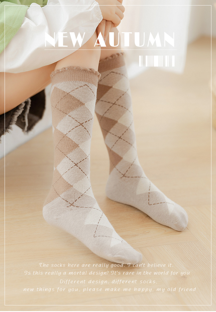 어린이 미드 튜브 양말 봄과 가을 순면 스타킹 통기성 한국 패션 가을과 겨울 대학 스타일 학생 여아 하이 튜브 양말