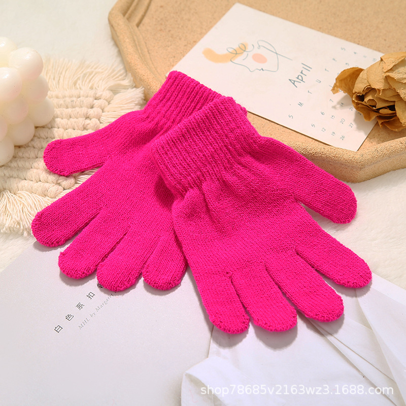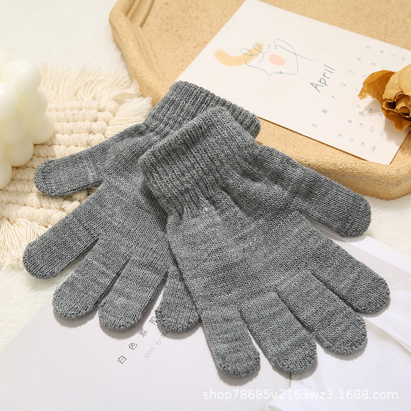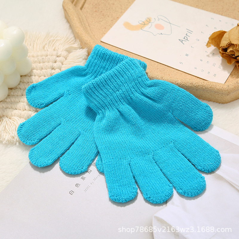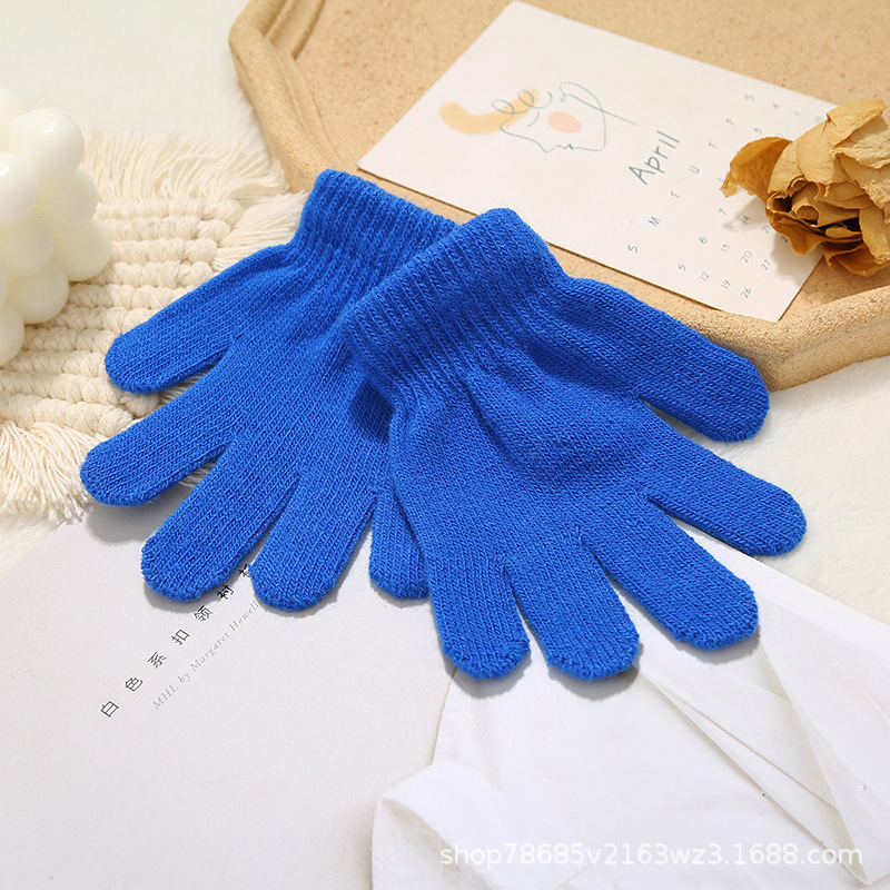 봄과 가을 학생 쓰기 방한 따뜻한 장갑 단색 두꺼운 면사 어린이 장갑 아기 스트레치 다섯 손가락 장갑